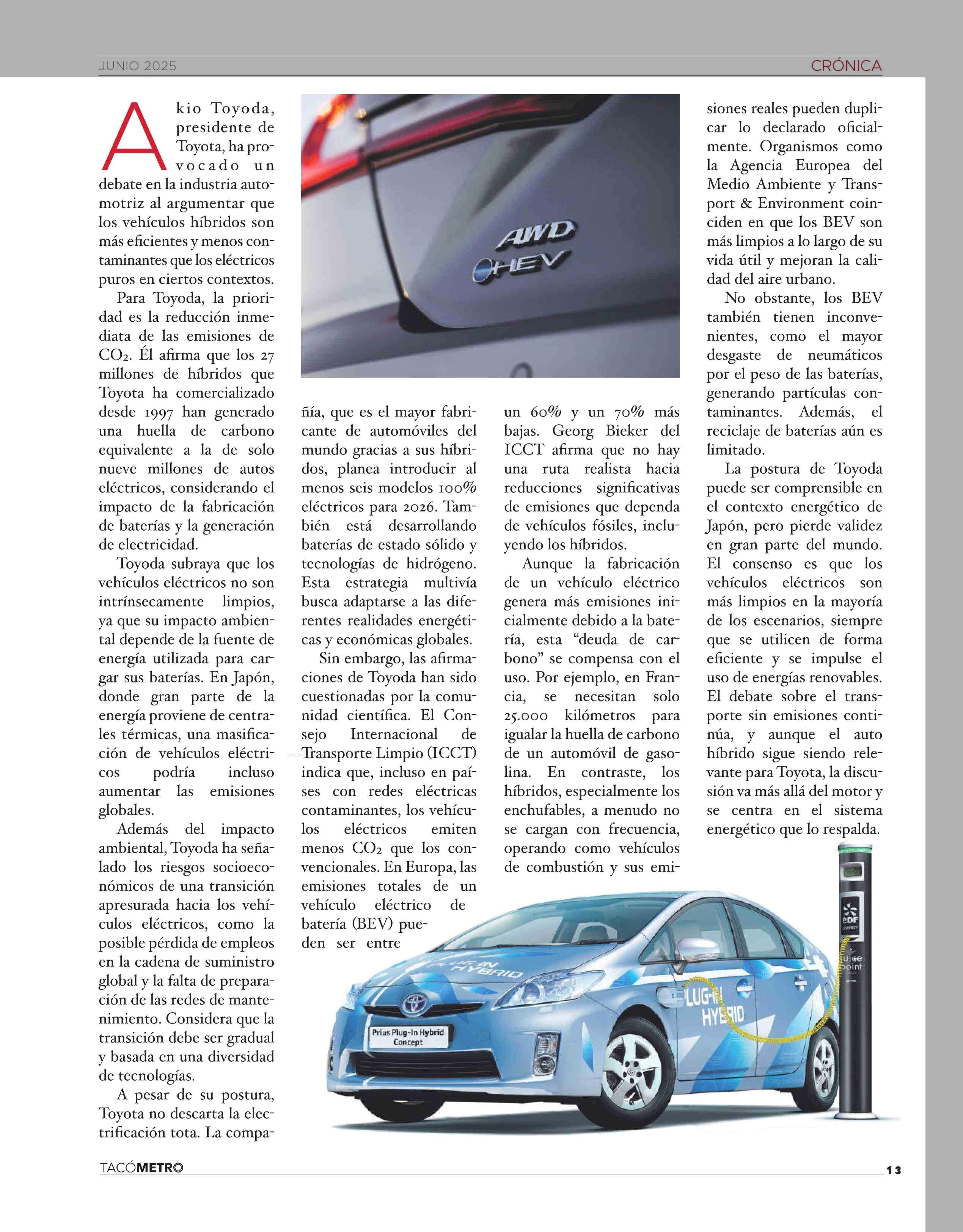 TOYOTA YLA DESCARBONIZACIÓN: ¡Híbridos vs. Eléctricos? 27-06-2025 Publimetro |