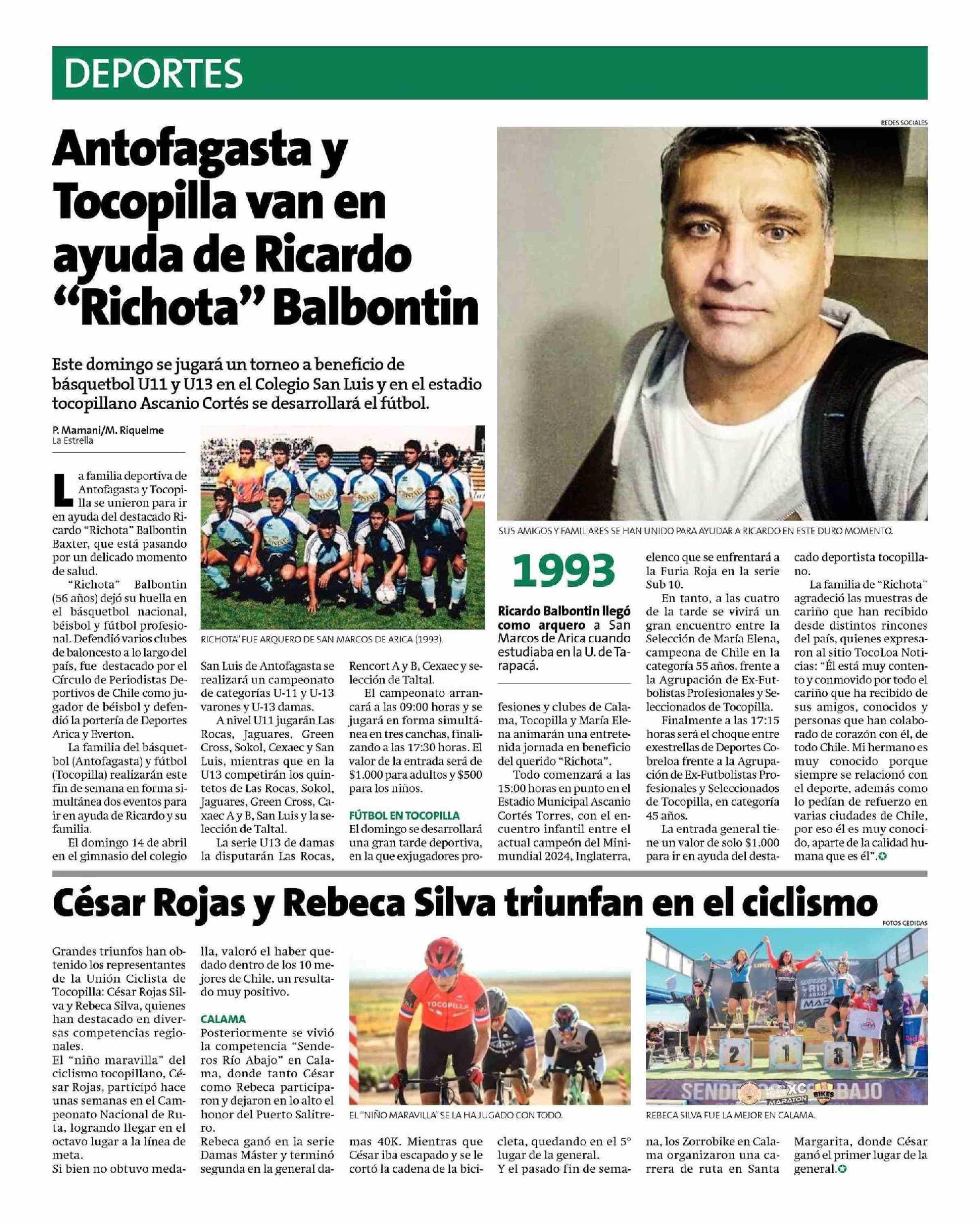 Antofagasta y Tocopilla van en ayuda de Ricardo “Richota” Balbontin 12-04-2024 La Estrella de Antofagasta |