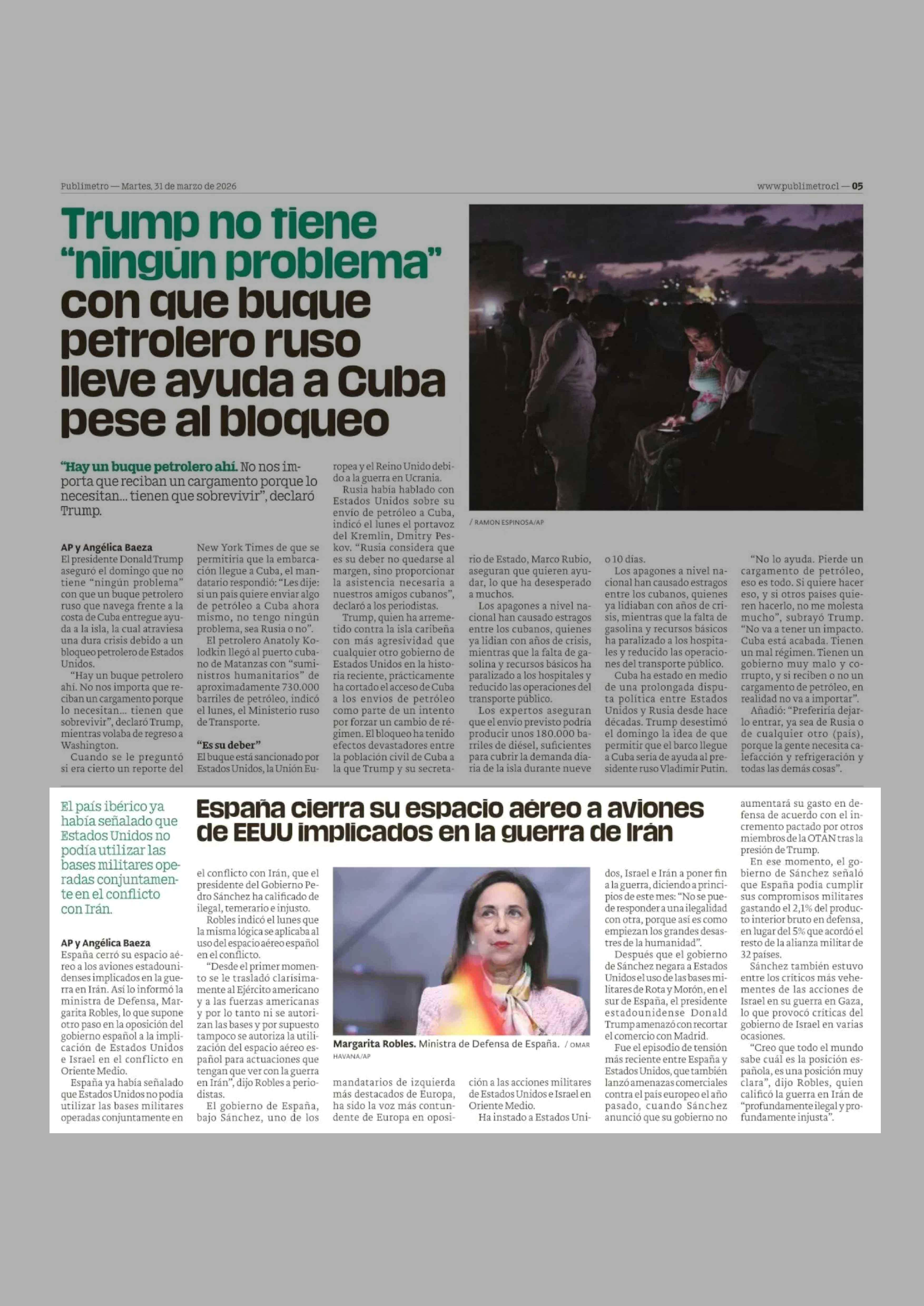 España cierra su espacio aereo a aviones de EEUU implicados en la guerra de Iran 31-03-2026 Publimetro |