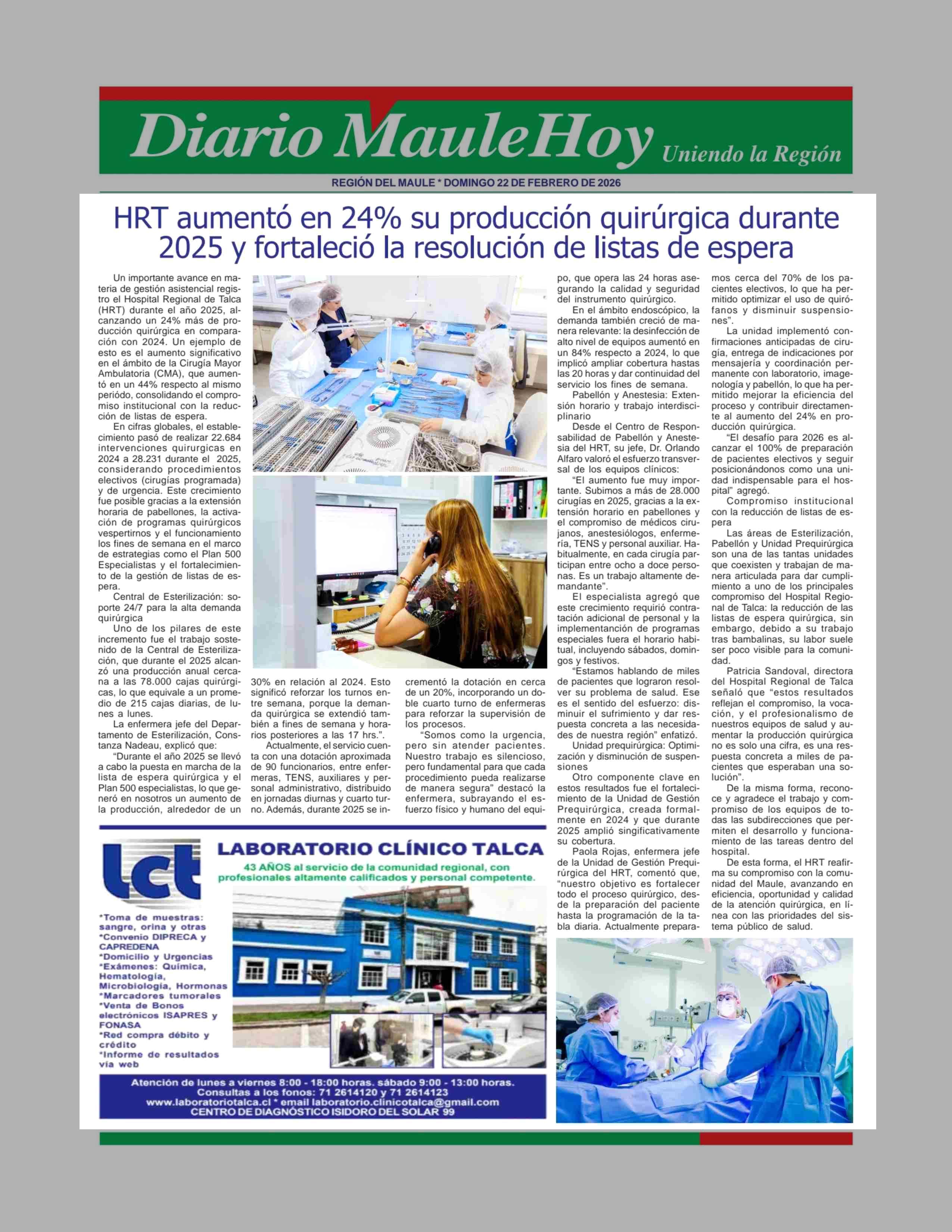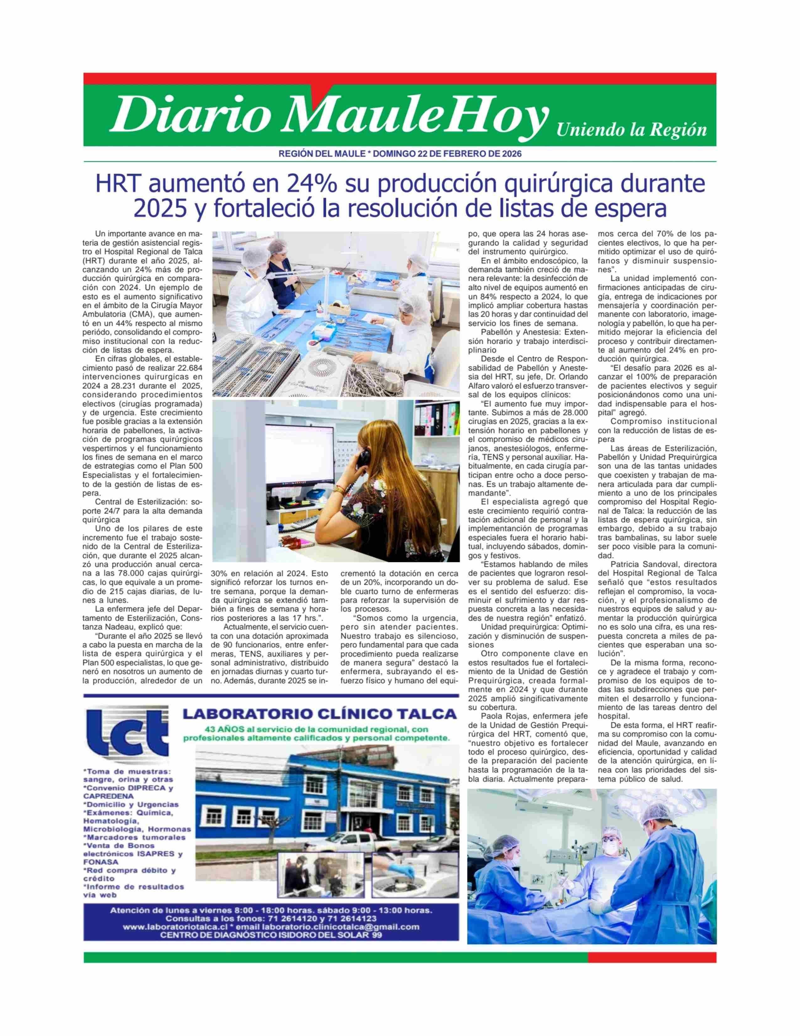 Fecha: 22-02-2026 Sector: Noticia general Región: Región del Maule