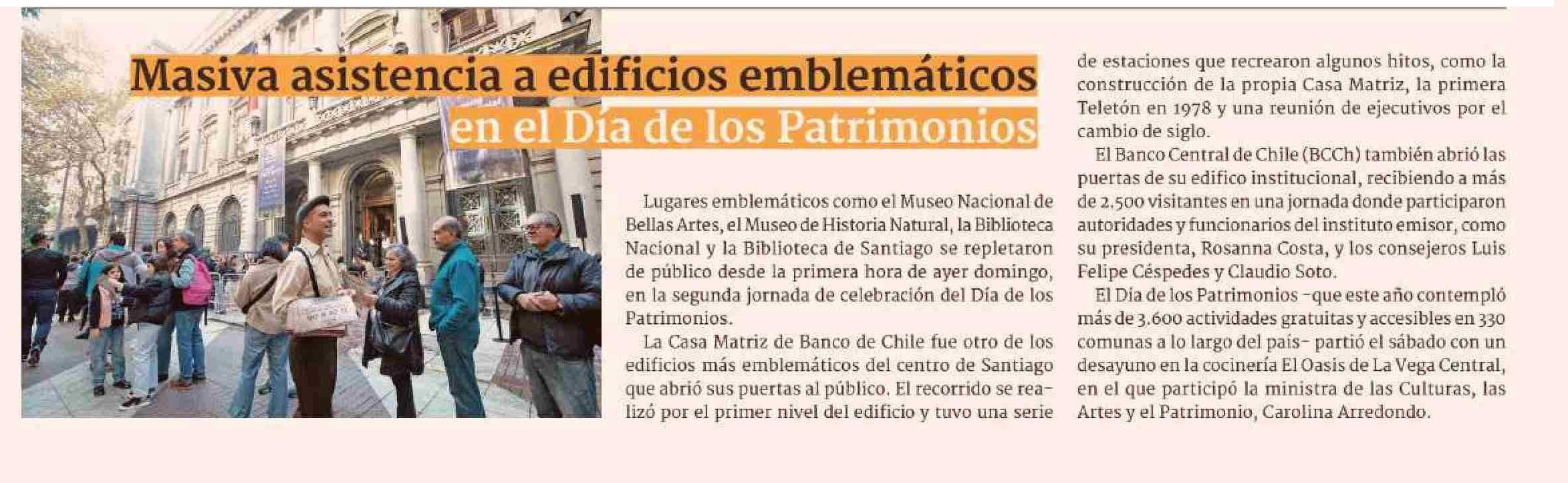Masiva asistencia a edificios emblemáticos en el Dia de los Patrimonio 26-05-2025 Diario Financiero |