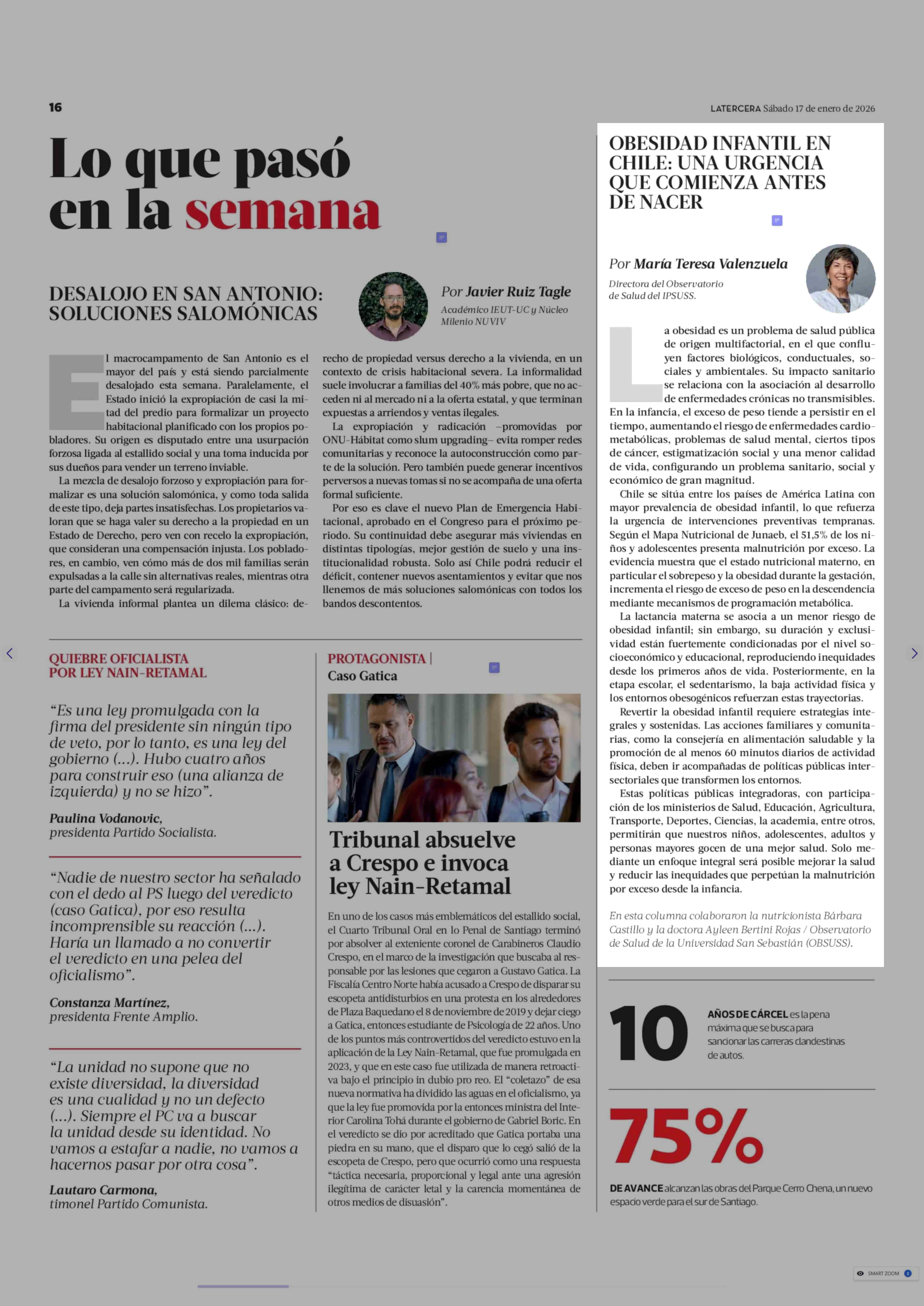 Título: Columnas de Opinión: OBESIDAD INFANTIL EN CHILE: UNA URGENCIA QUE COMIENZA ANTES DE NACER