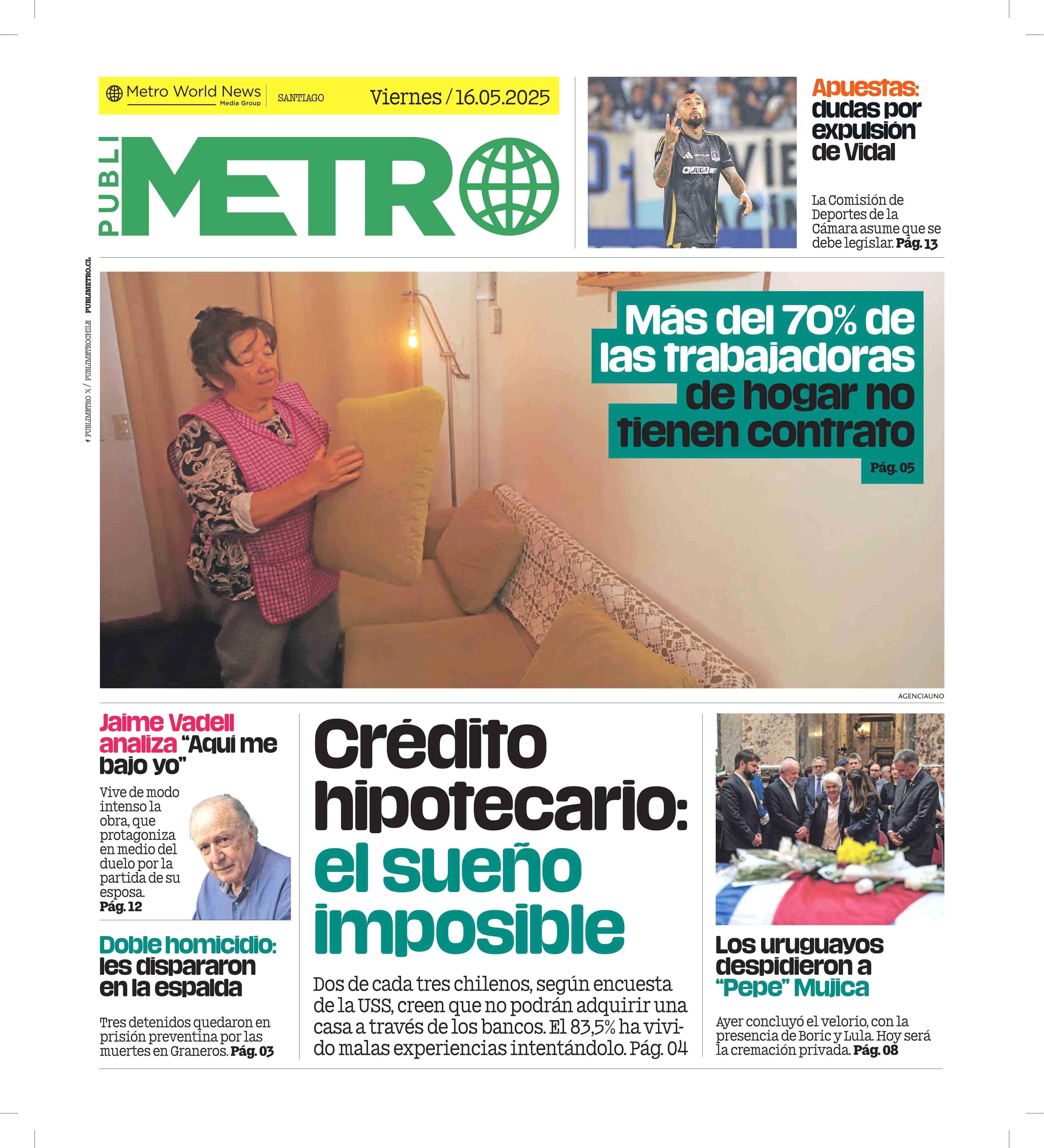 PORTADA PUBLIMETRO CHILE 16-05-2025 Publimetro |