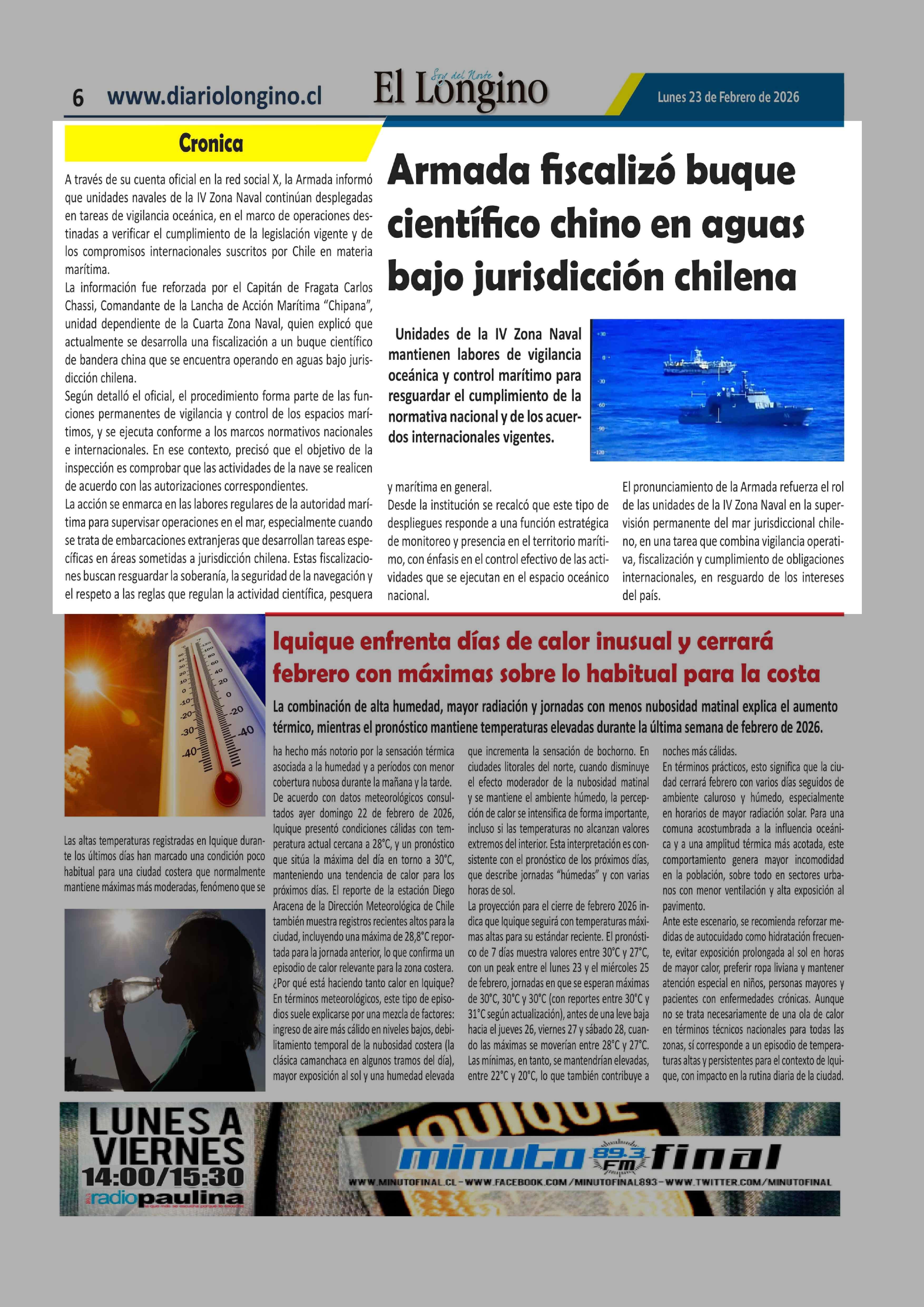 Fecha: 23-02-2026 Sector: Noticia general Región: Región de Tarapacá