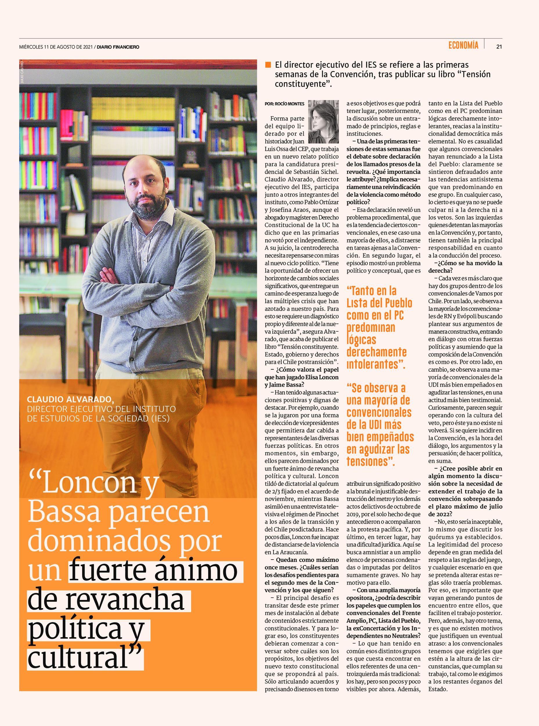 "Loncon y Bassa parecen dominados por un fuerte ánimo de revancha política y cultural" 11-08-2021 Diario Financiero |