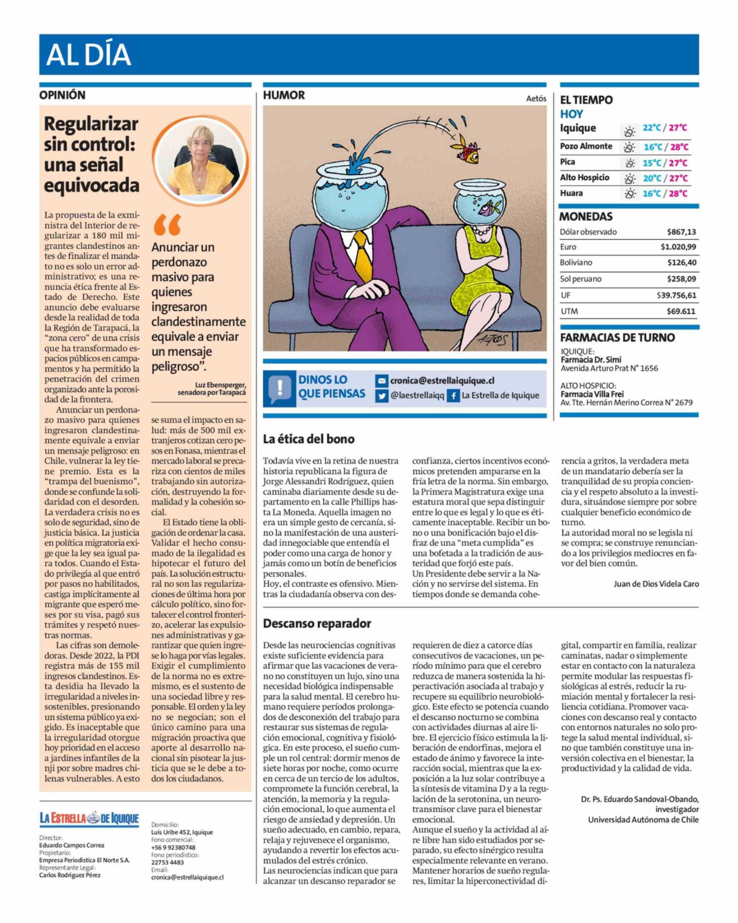 Fecha: 22-02-2026 Sector: Columnas de Opinión Región: Región de Tarapacá
