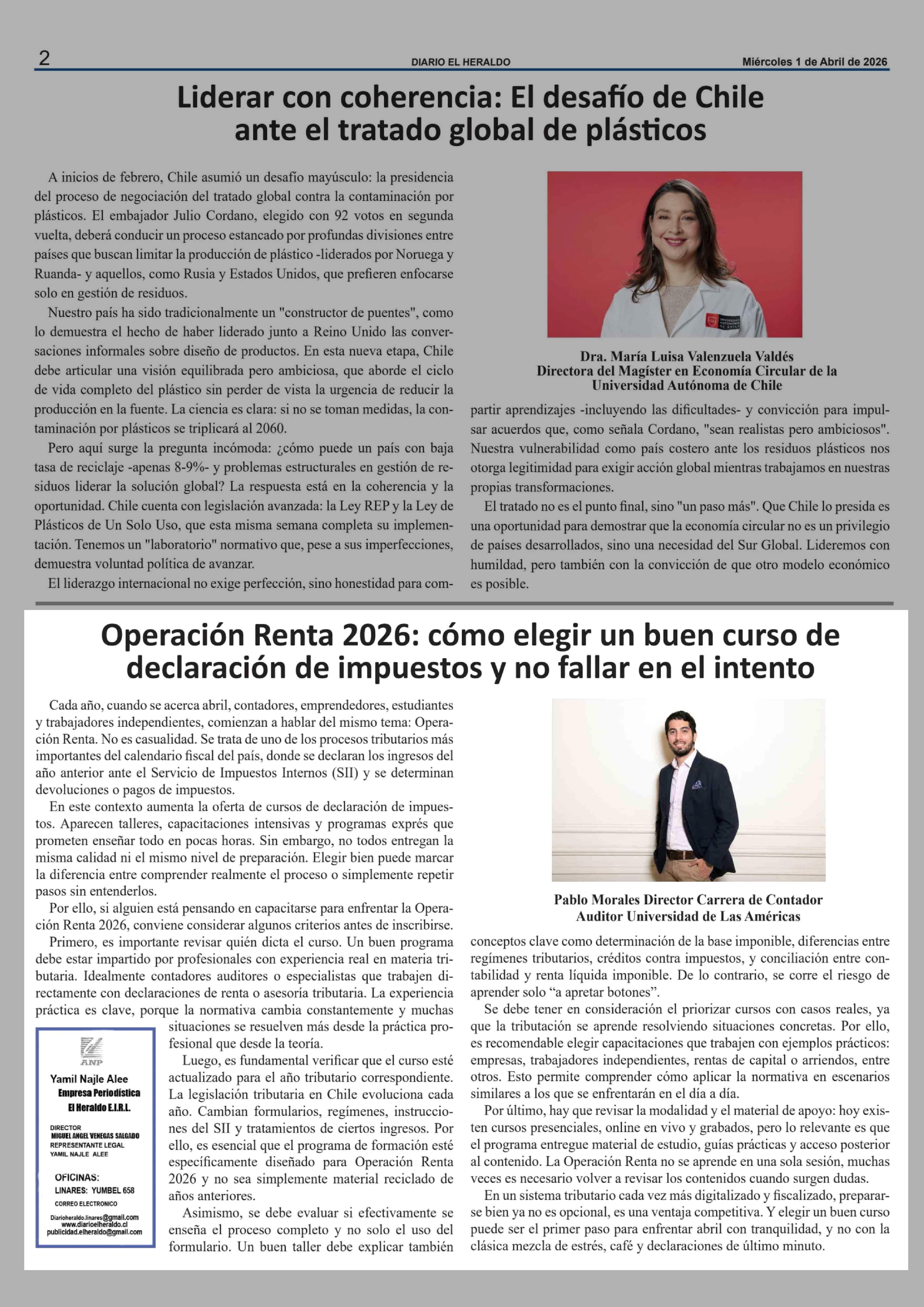 Columnas de Opinión: Operación Renta 2026: cómo elegir un buen curso de declaración de impuestos y no fallar en el intento 01-04-2026 El Heraldo |