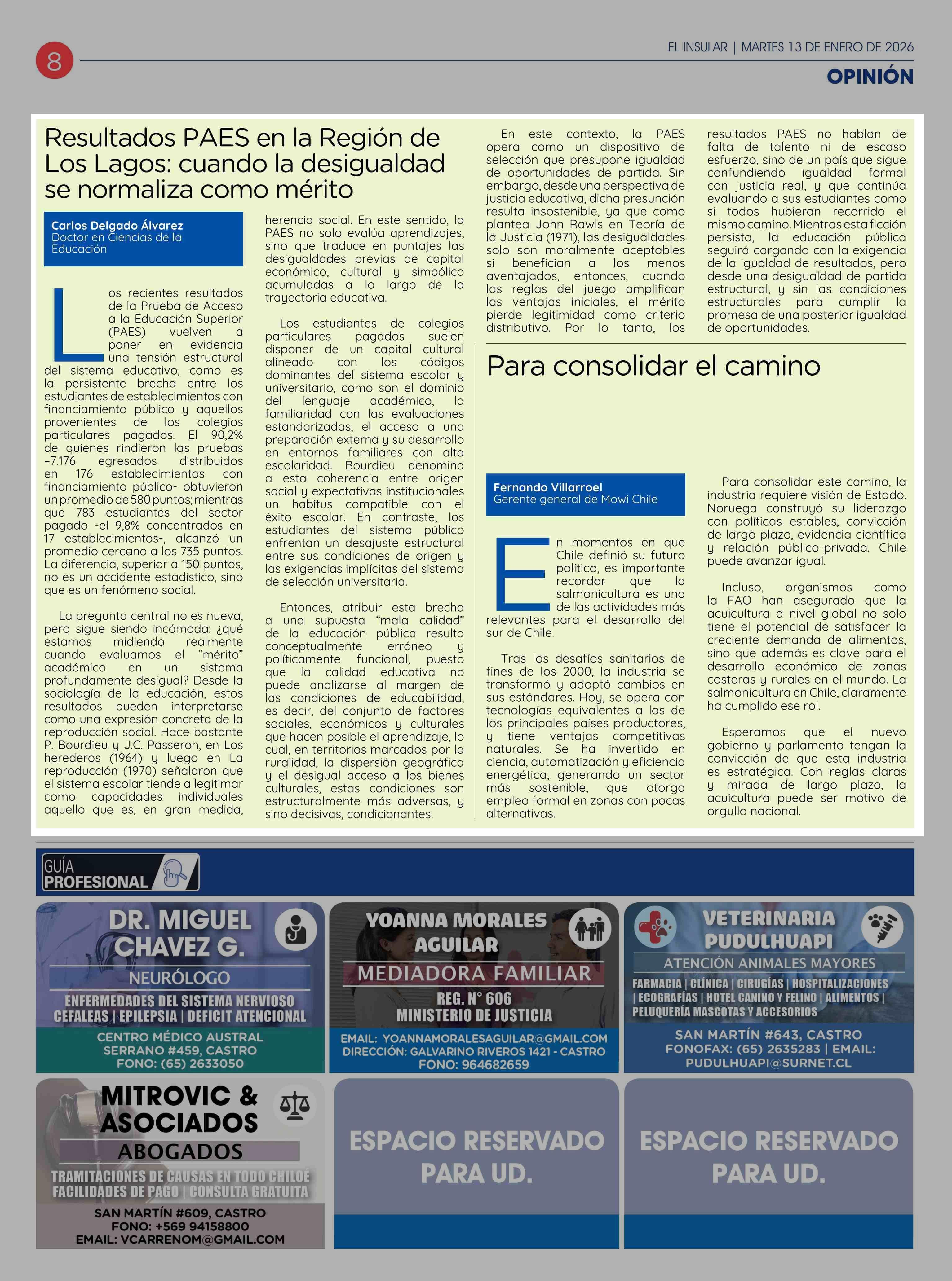 Fecha: 13-01-2026 Sector: Columnas de Opinión Región: Región de Los Lagos
