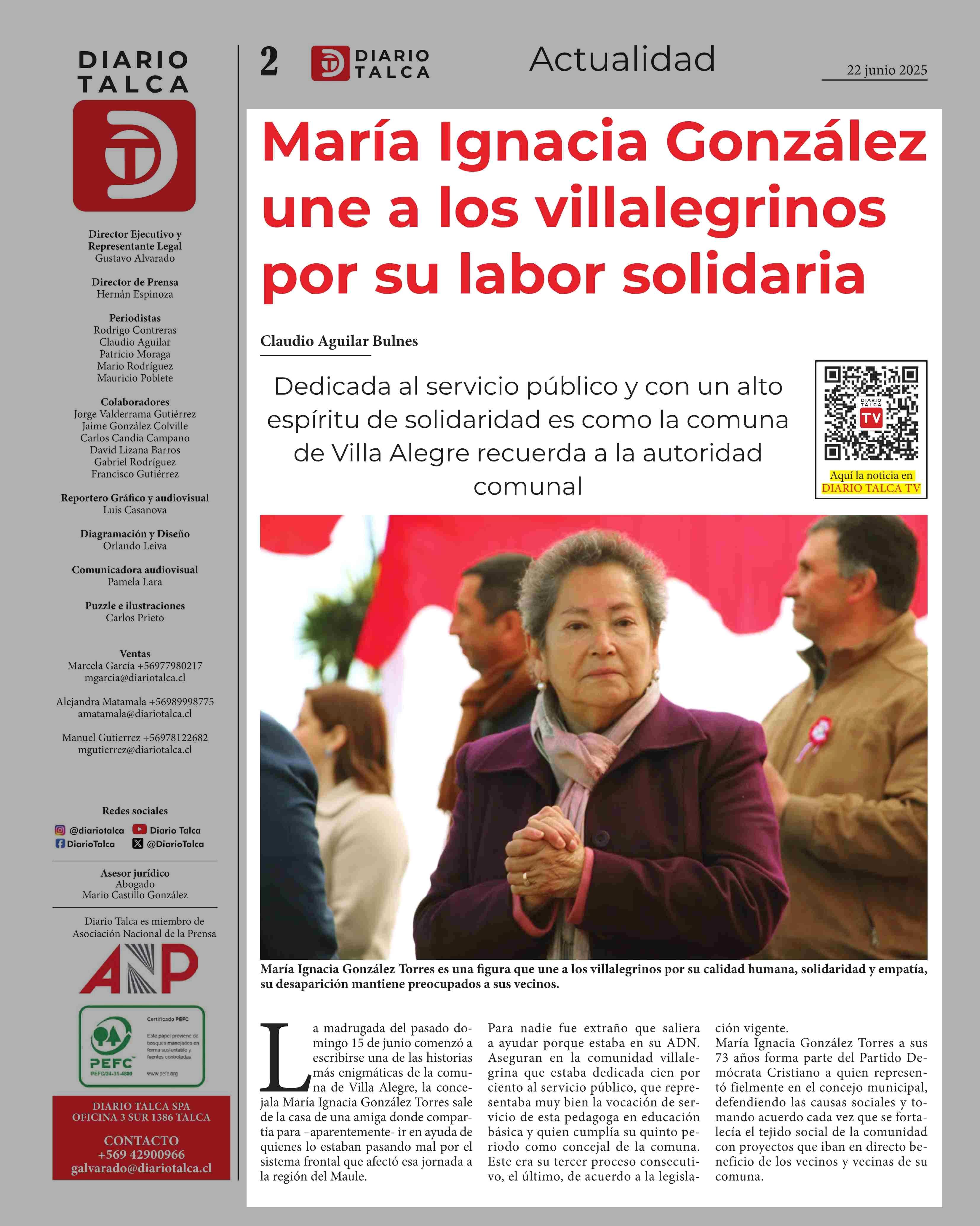 María Ignacia González une a los villalegrinos por su labor solidaria 22-06-2025 Diario Talca |