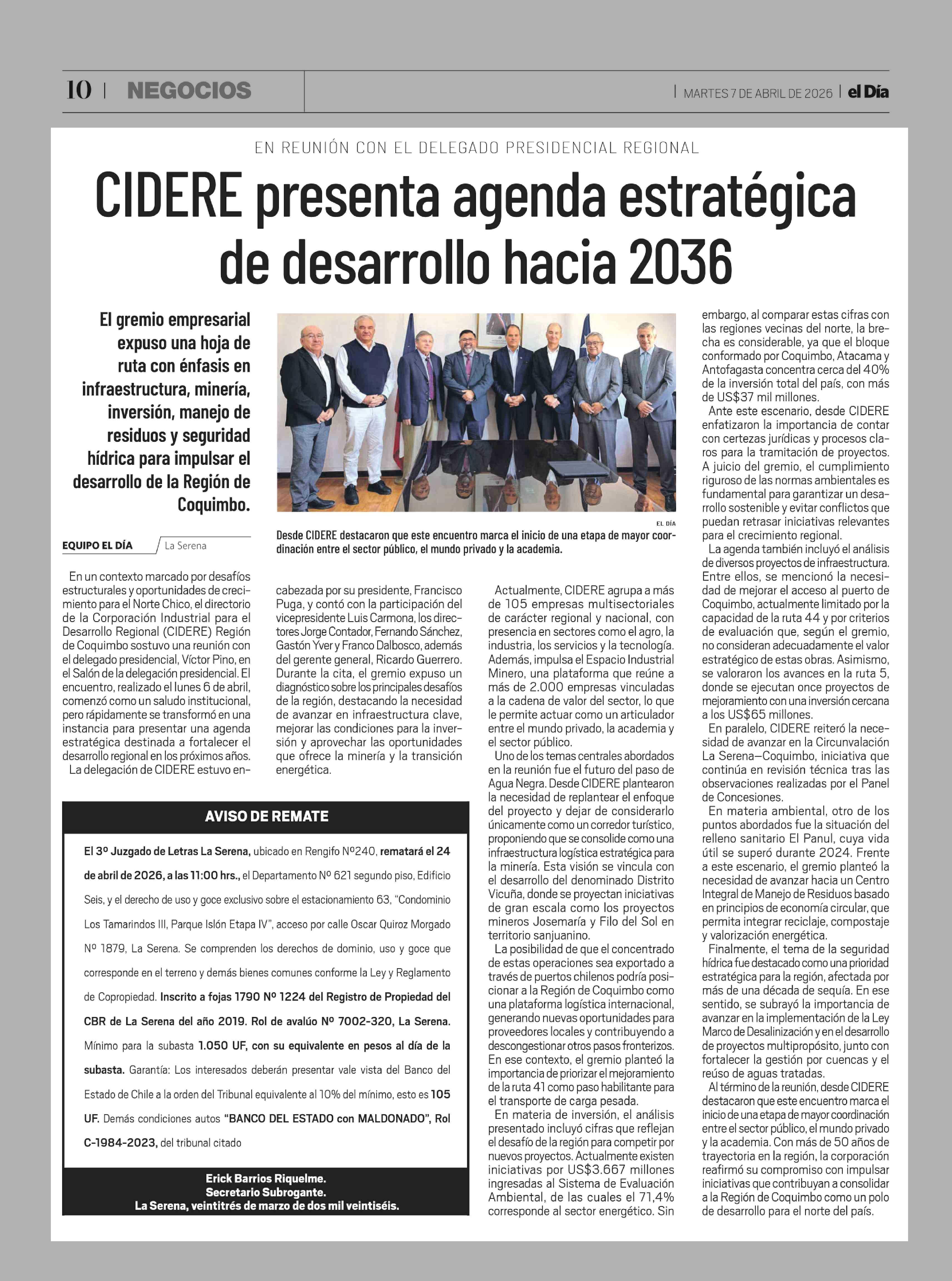 Título: CIDERE presenta agenda estratégica de desarrollo hacia 2036