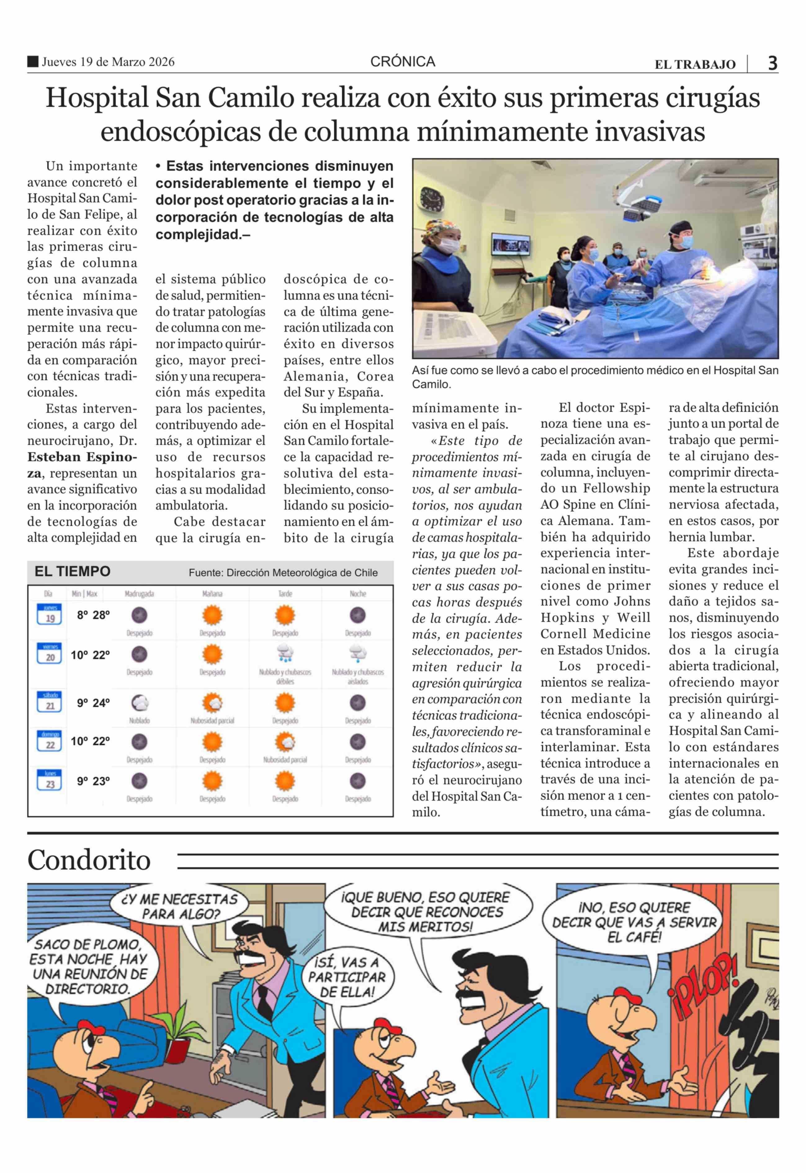 Título: Hospital San Camilo realiza con éxito sus primeras cirugías endoscópicas de columna mínimamente invasivas