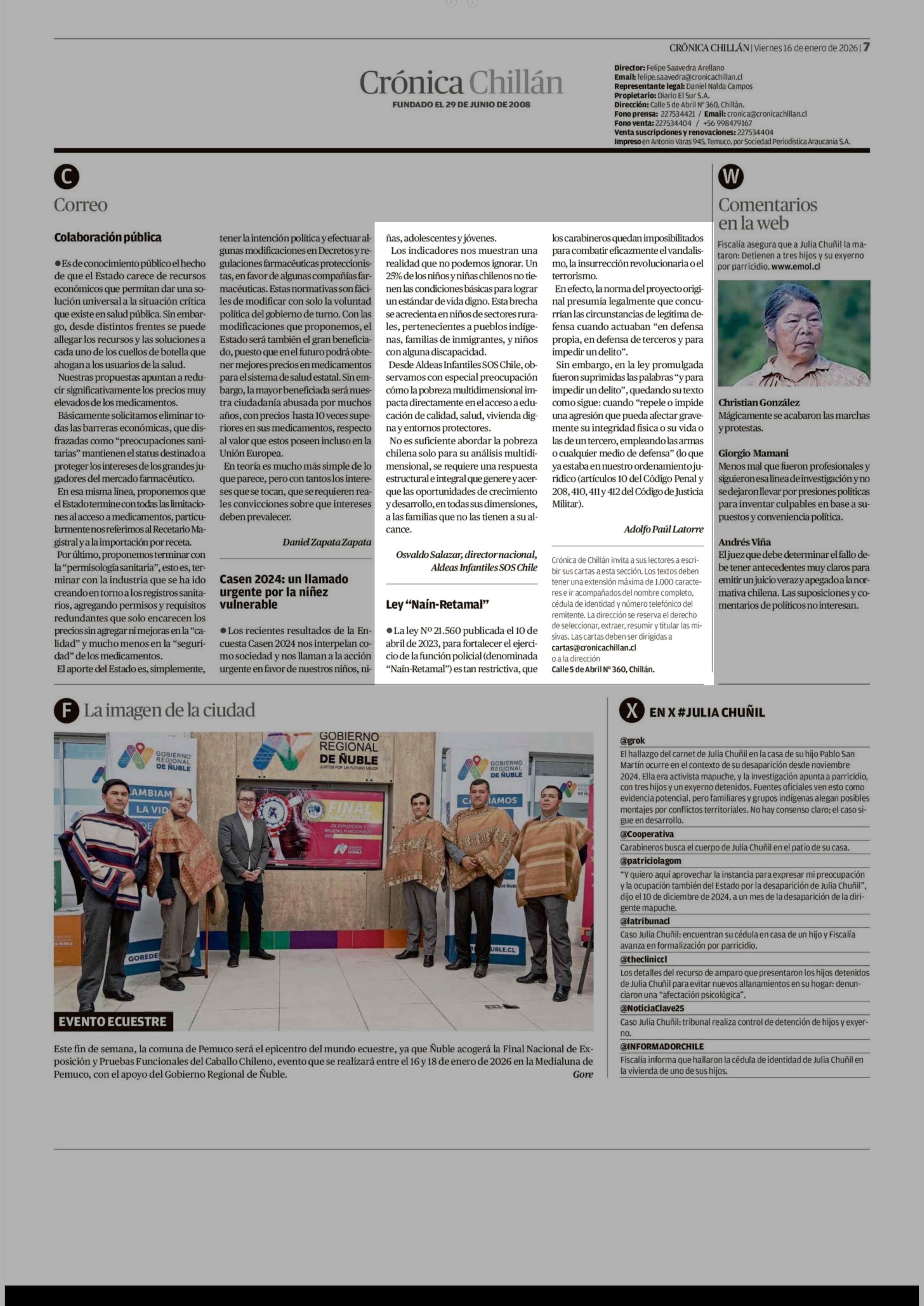 Cartas: Ley "Naín-Retamal" 16-01-2026 Crónica de Chillán |