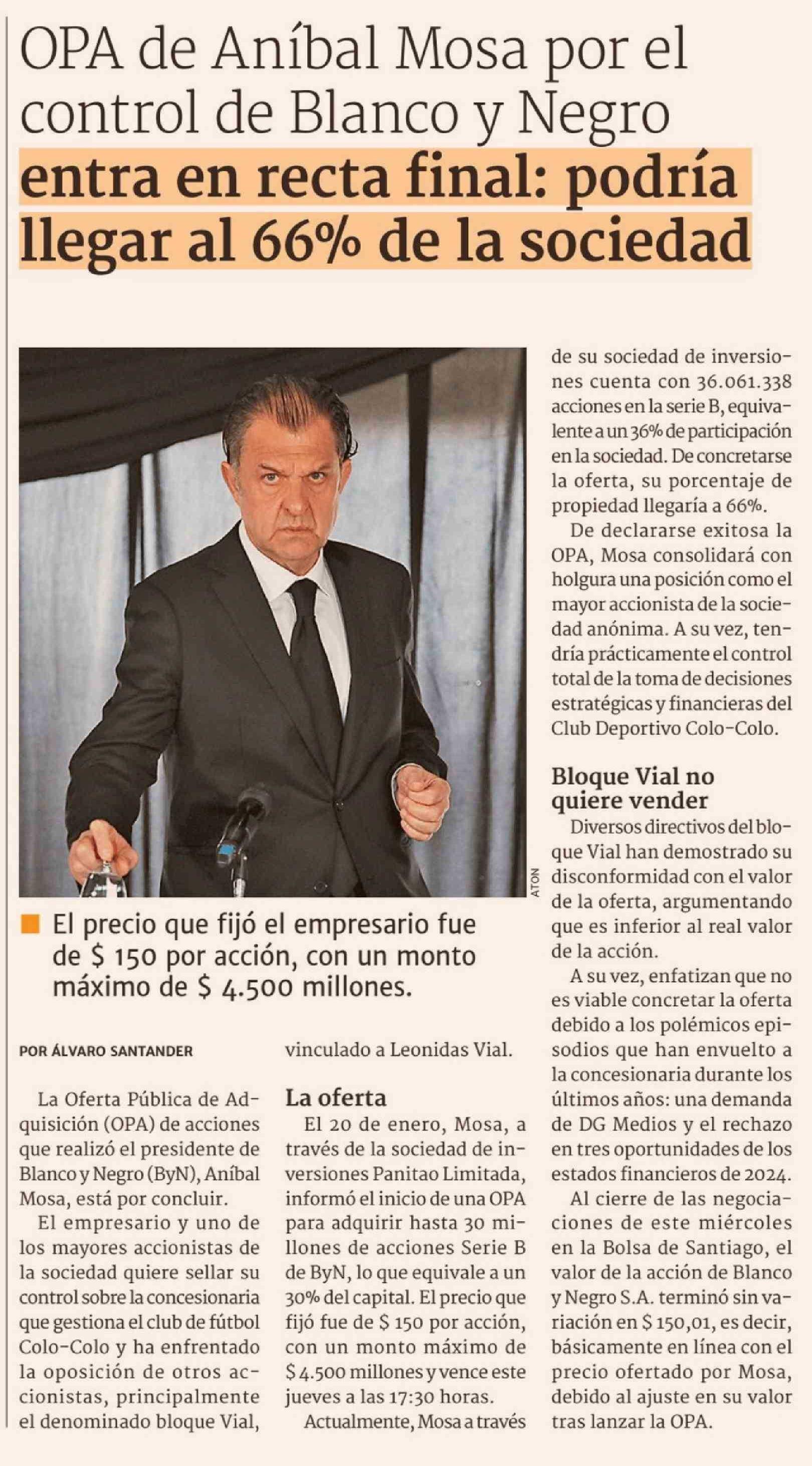 Título: OPA de Aníbal Mosa por el control de Blanco y Negro entra en recta final: podría llegar al 66% de la sociedad