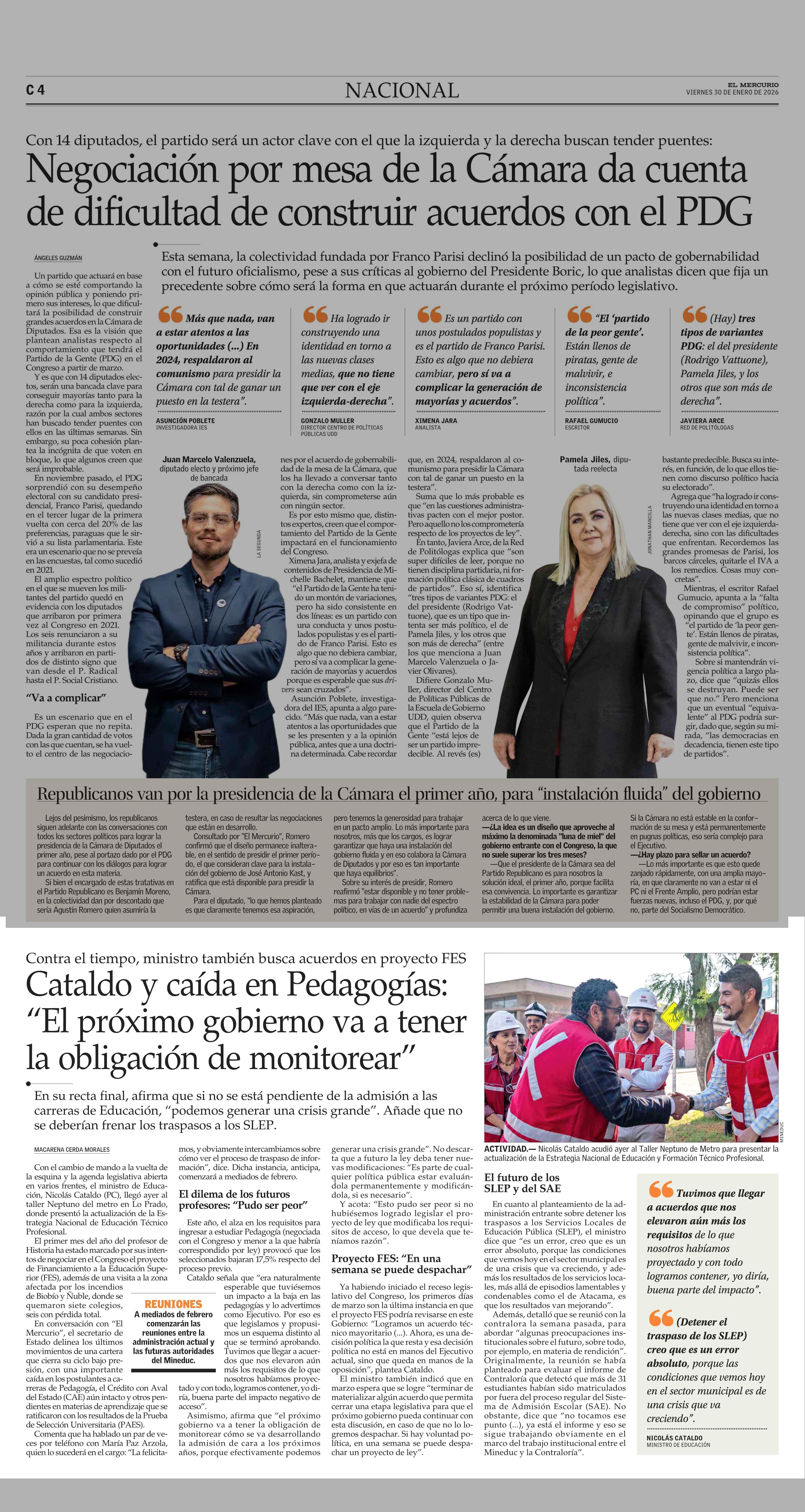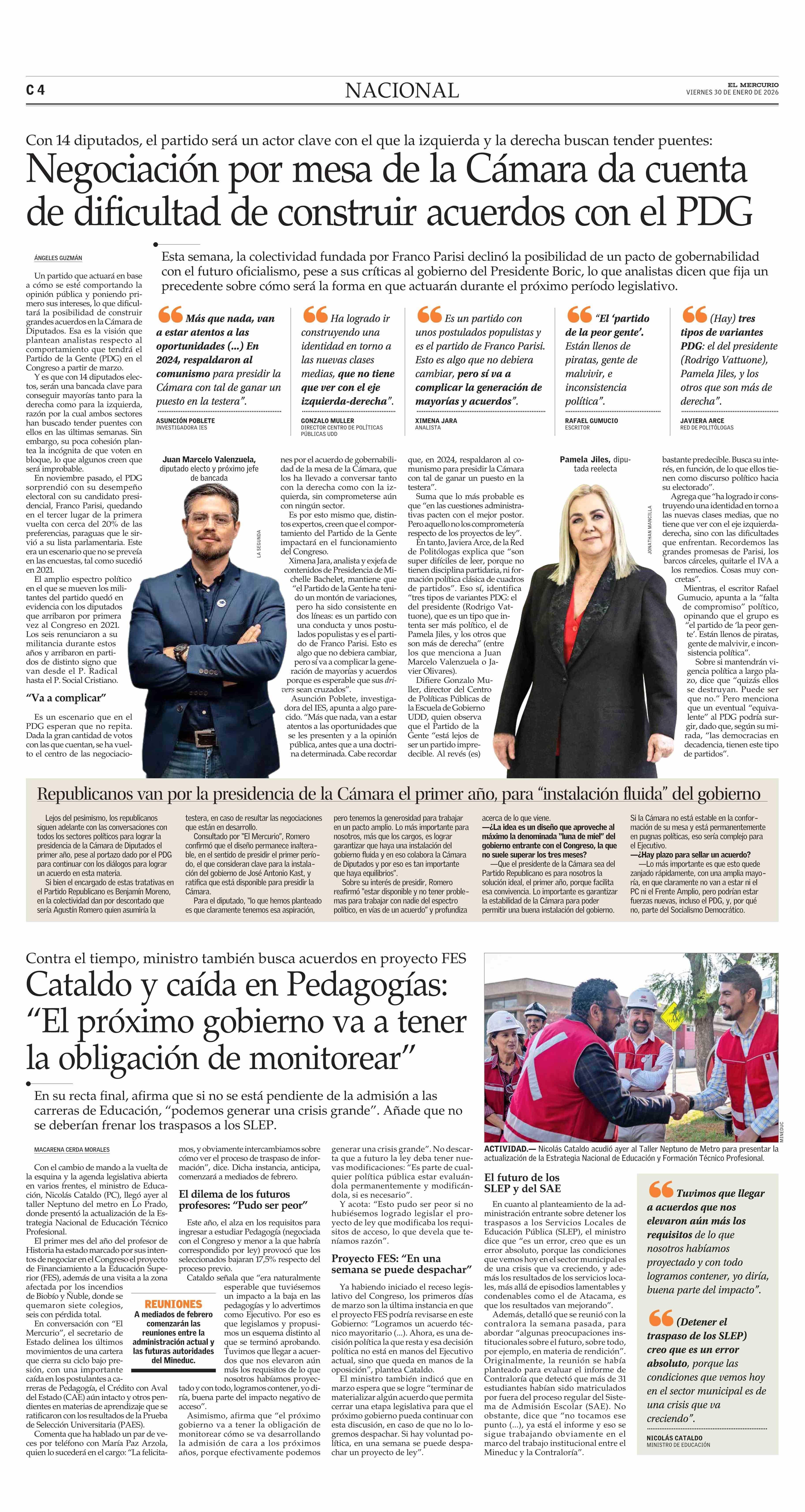 Cataldo y caída en Pedagogías: "El próximo gobierno va a tener la obligación de monitorear" 30-01-2026 El Mercurio |