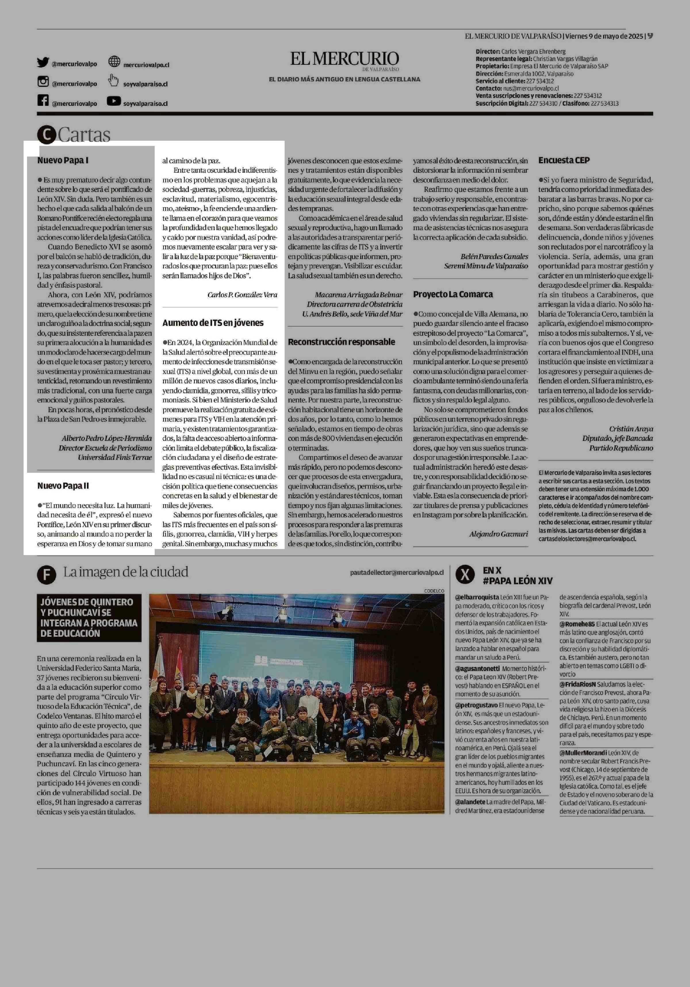CARTAS: Nuevo Papa II 09-05-2025 El Mercurio de Valparaíso |