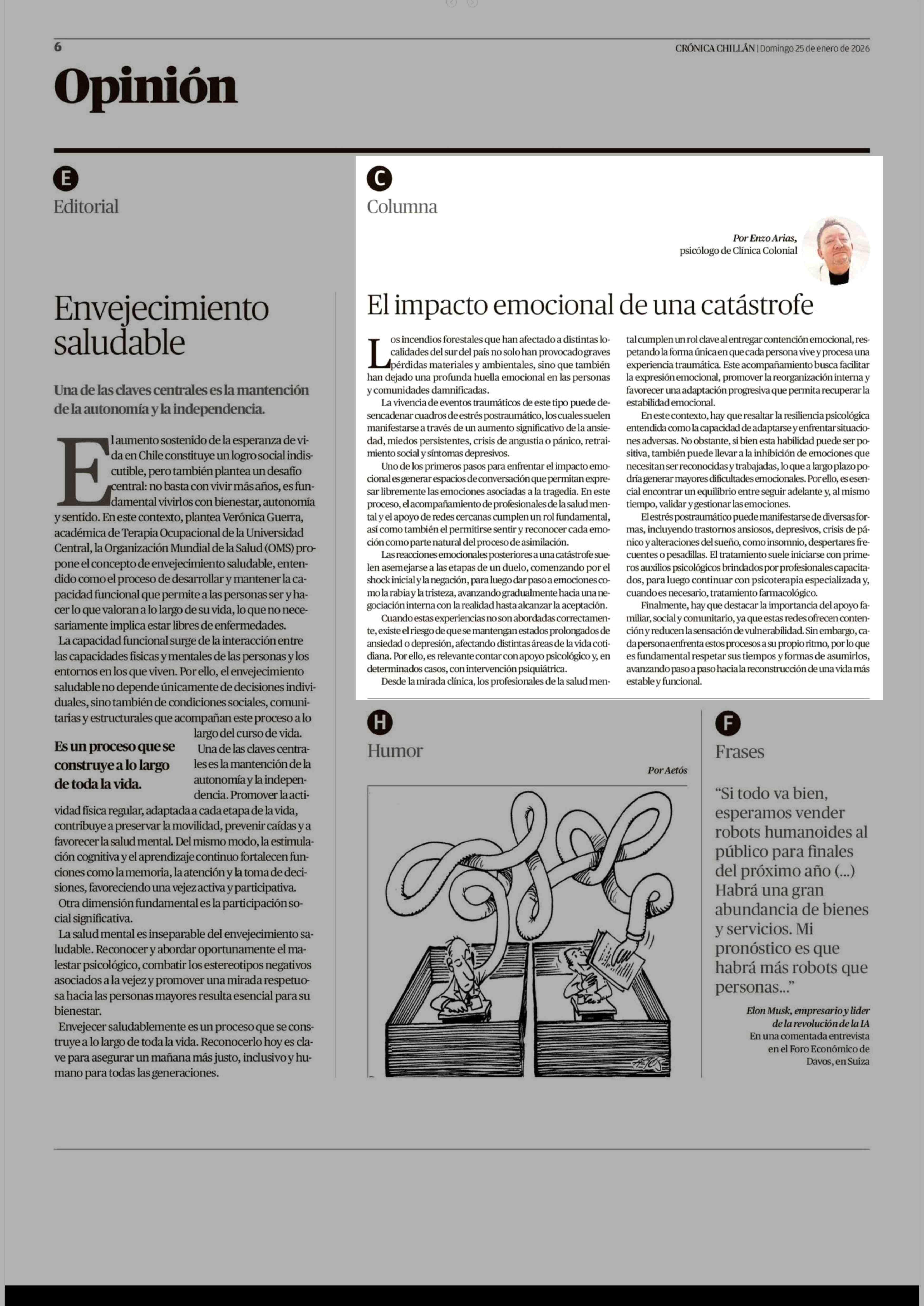 Fecha: 25-01-2026 Sector: Columnas de Opinión Región: Región del Ñuble