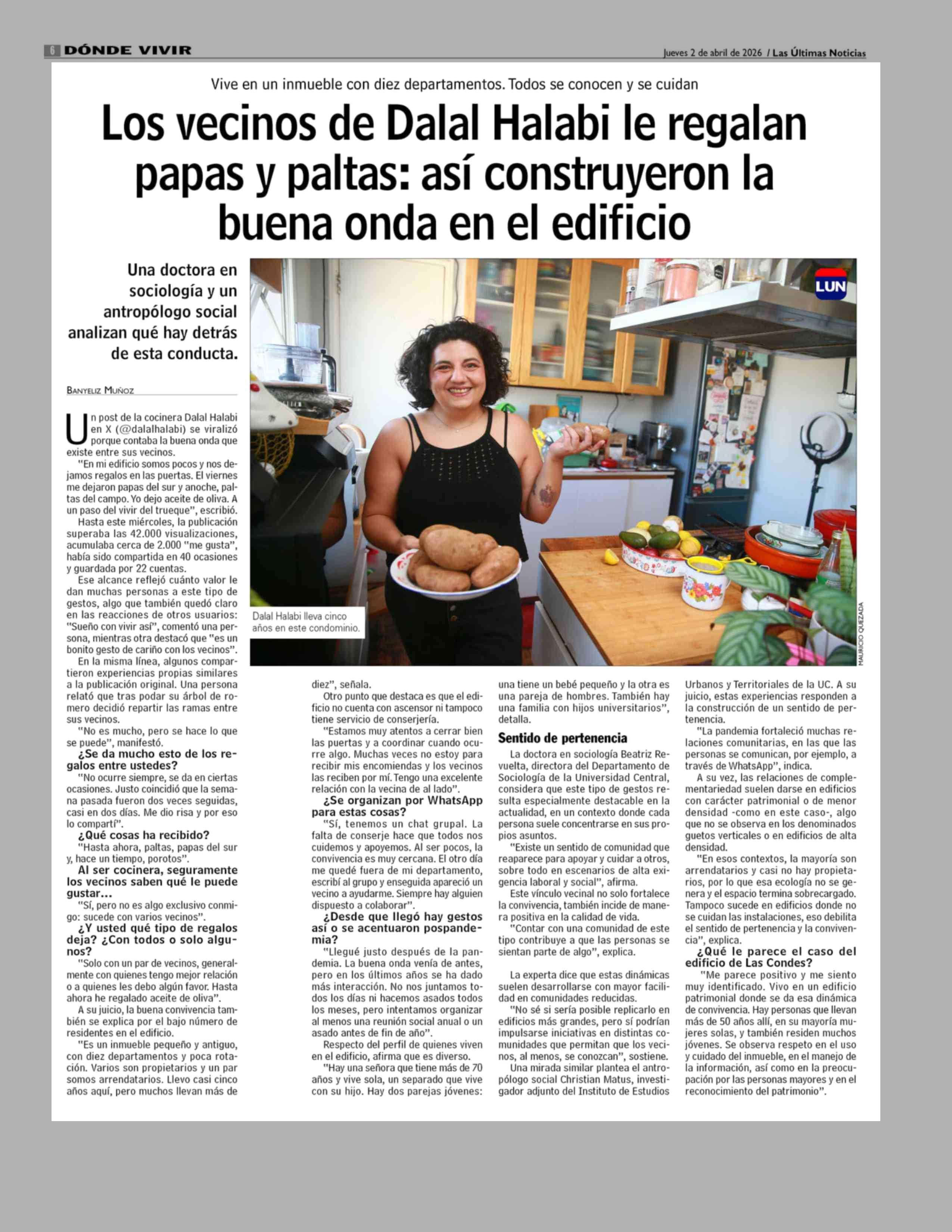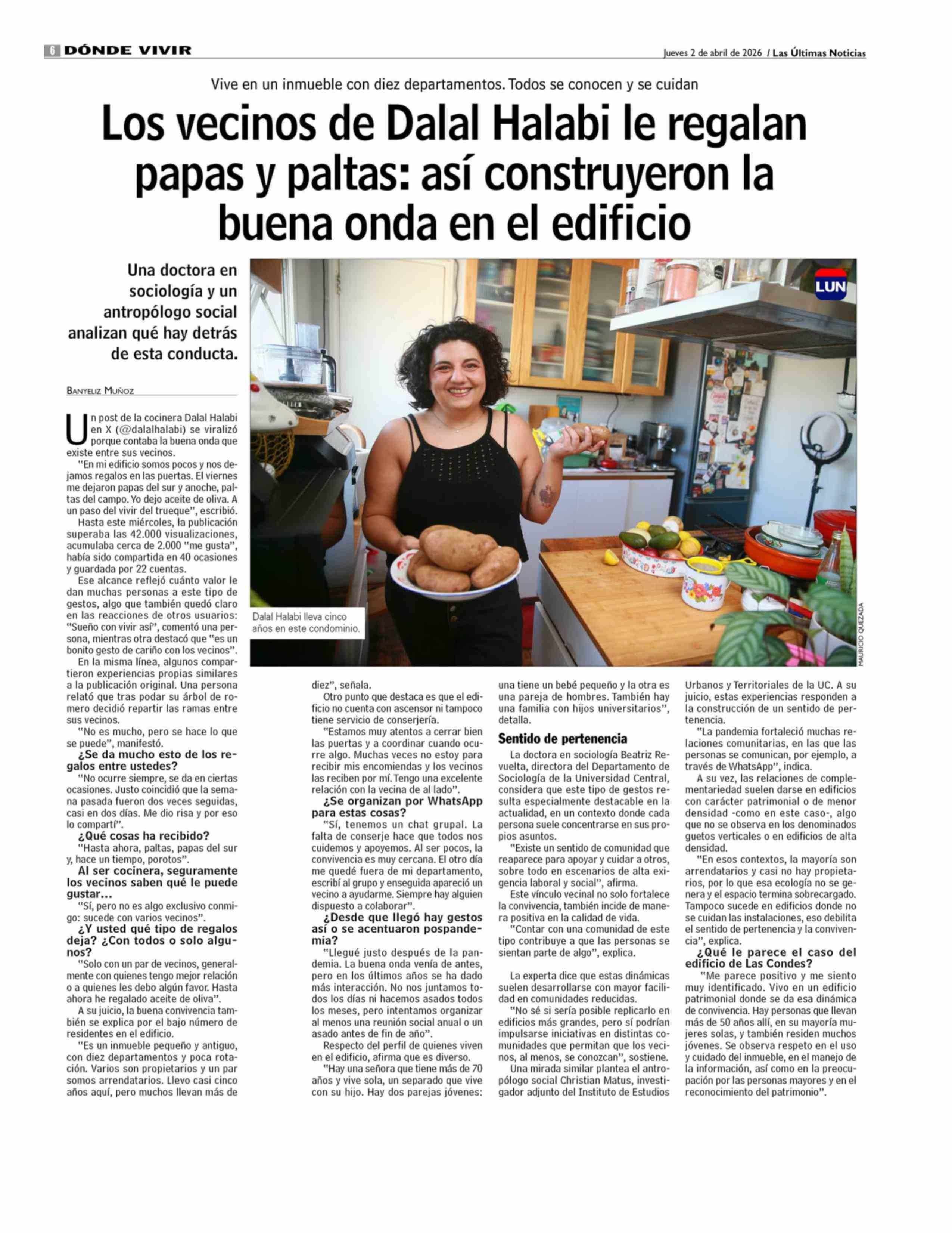 Los vecinos de Dalal Halabi le regalan papas y paltas: así construyeron la buena onda en el edificio 02-04-2026 Las Últimas Noticias |