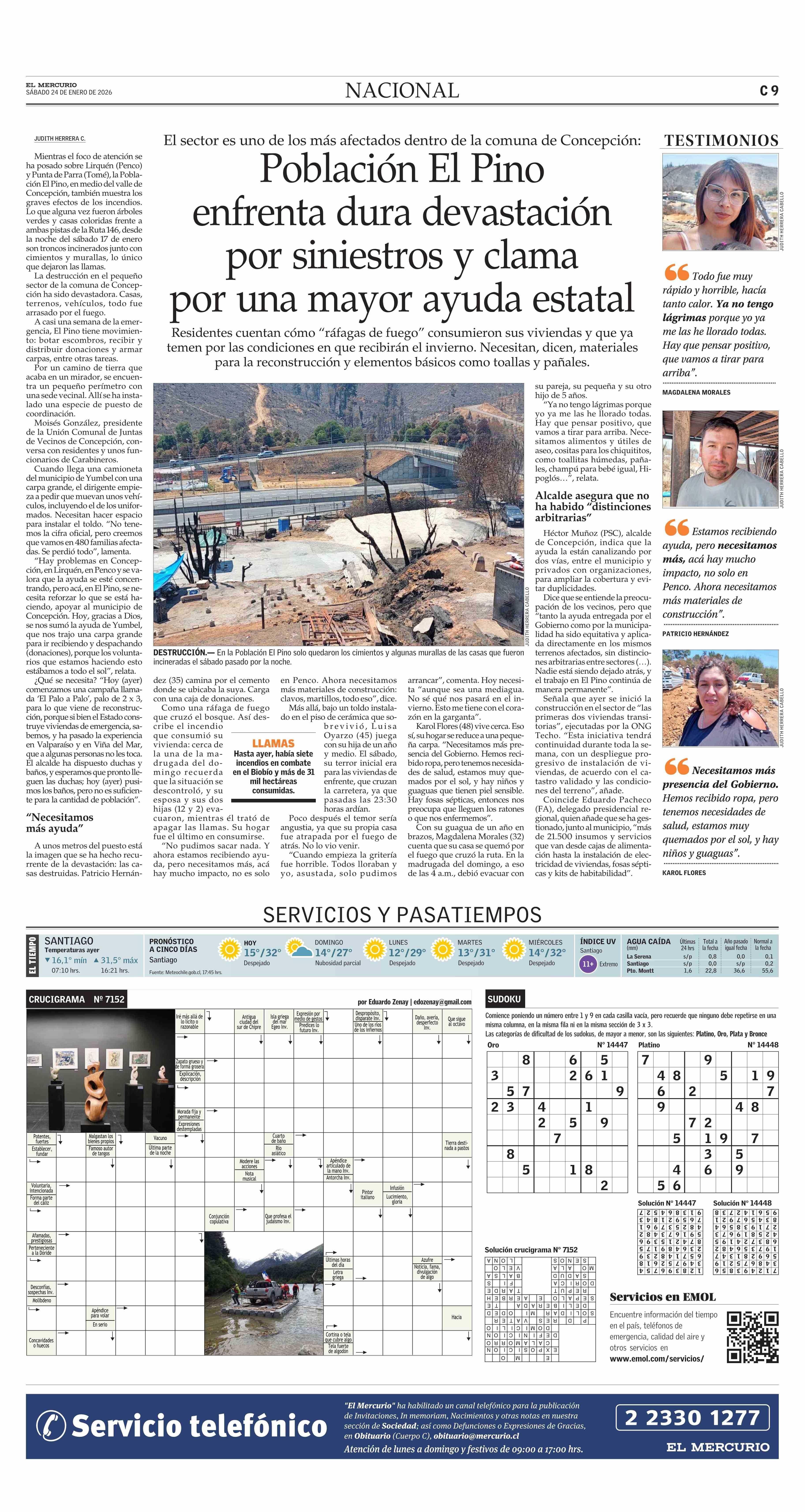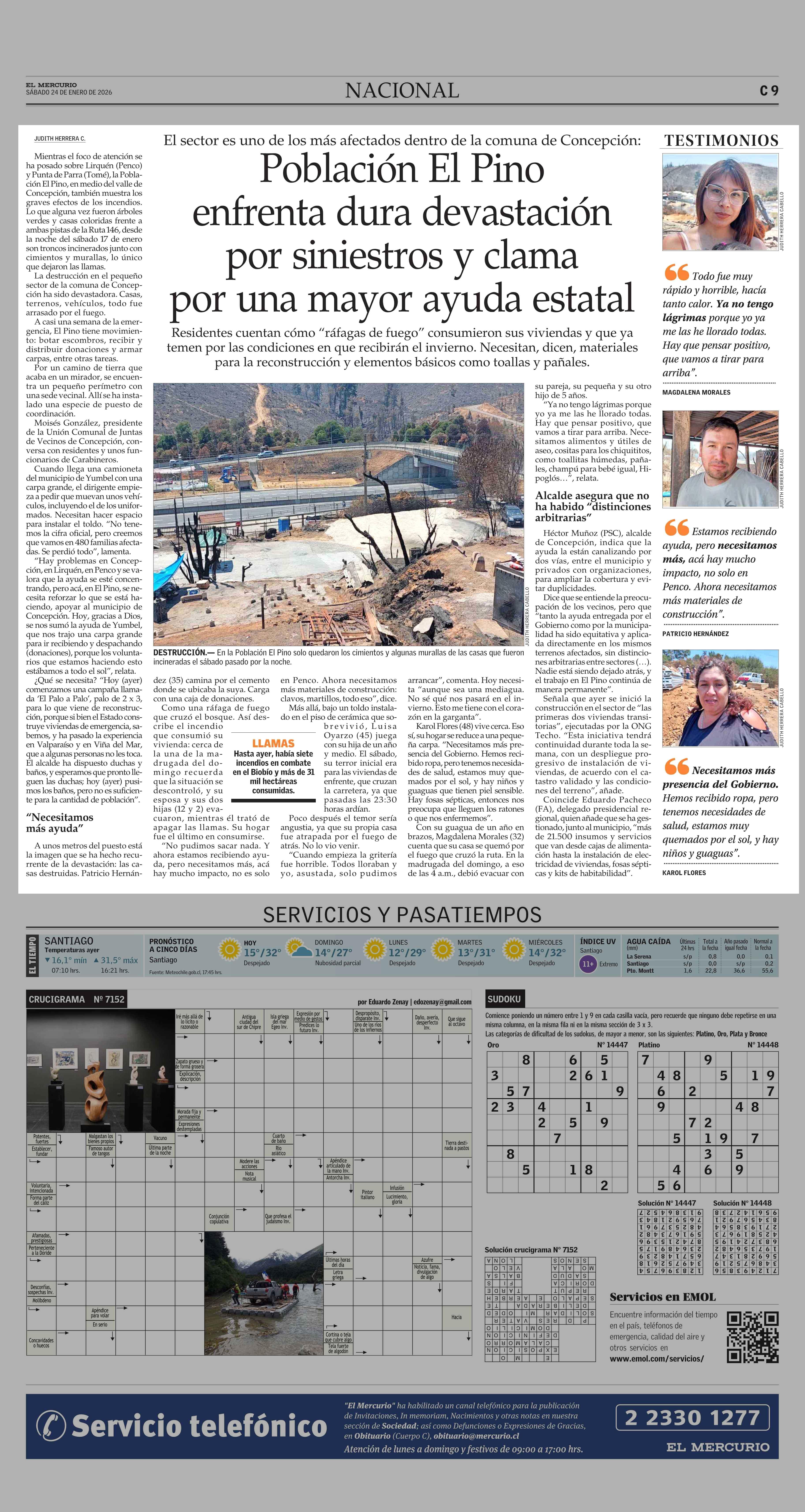 Población El Pino enfrenta dura devastación por siniestros y clama por una mayor ayuda estatal 24-01-2026 El Mercurio |