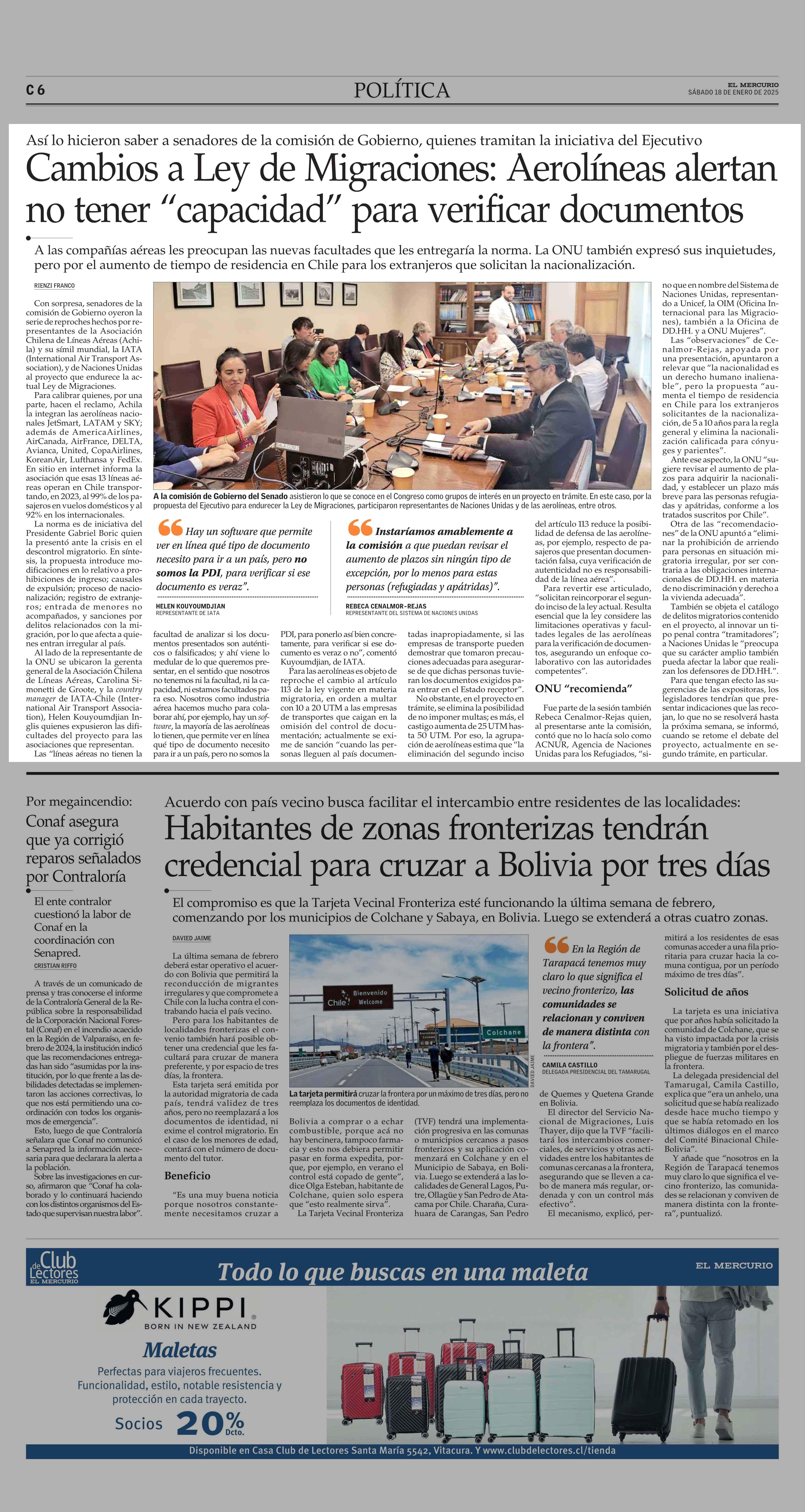 Cambios a Ley de Migraciones: Aerolíneas alertan no tener "capacidad" para verificar documentos 18-01-2025 El Mercurio |