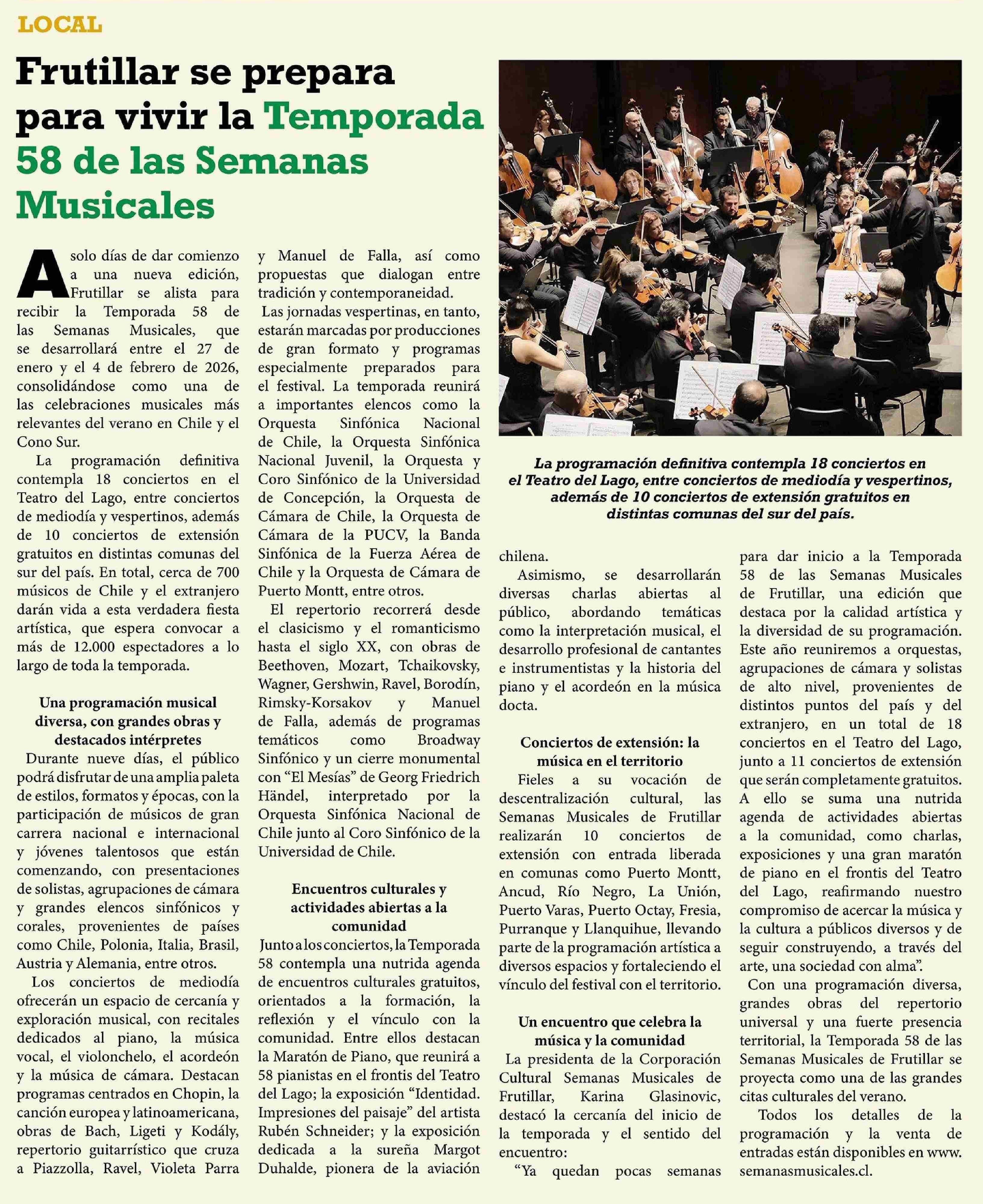 Título: Frutillar se prepara para vivir la Temporada 58 de las Semanas Musicales