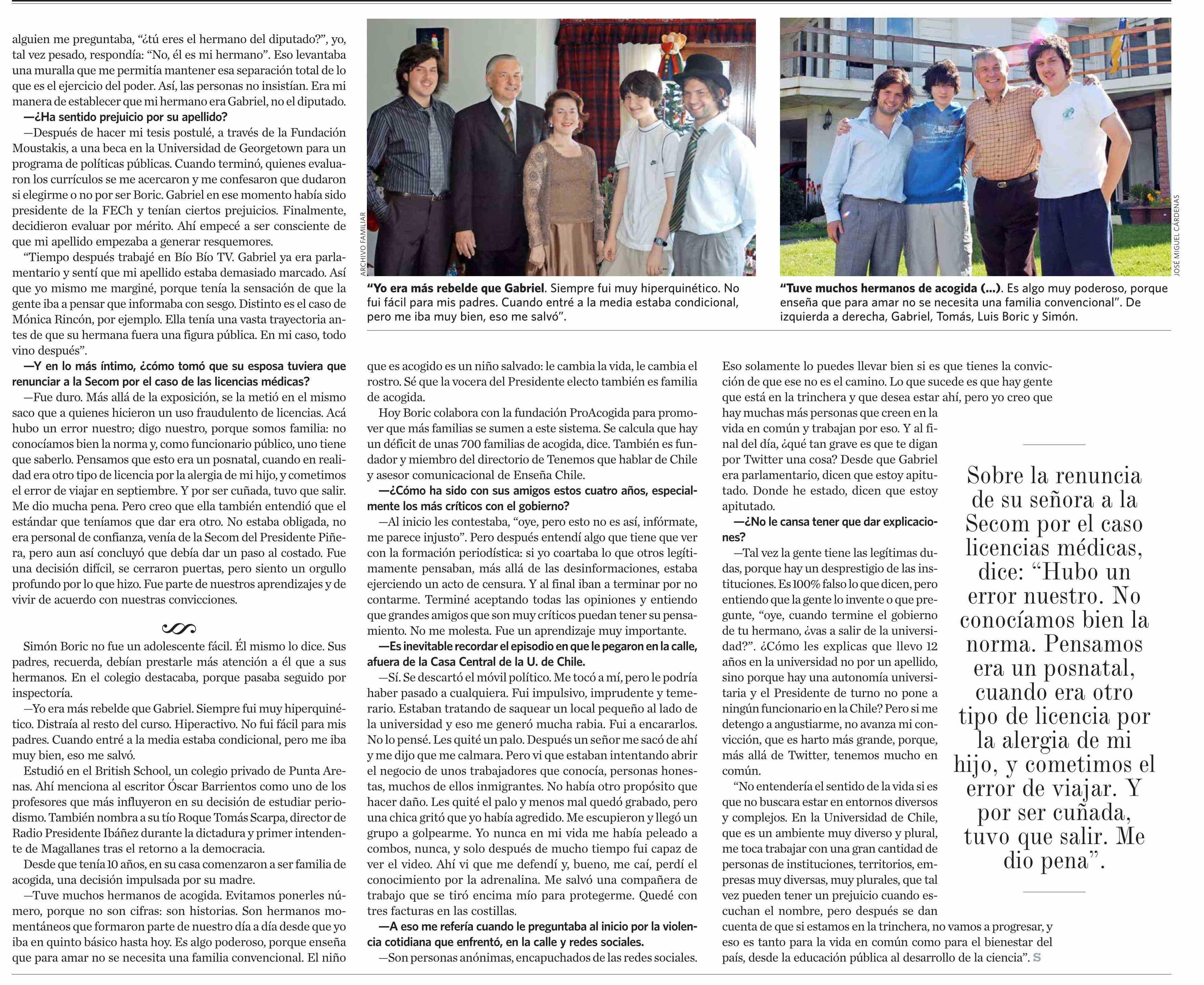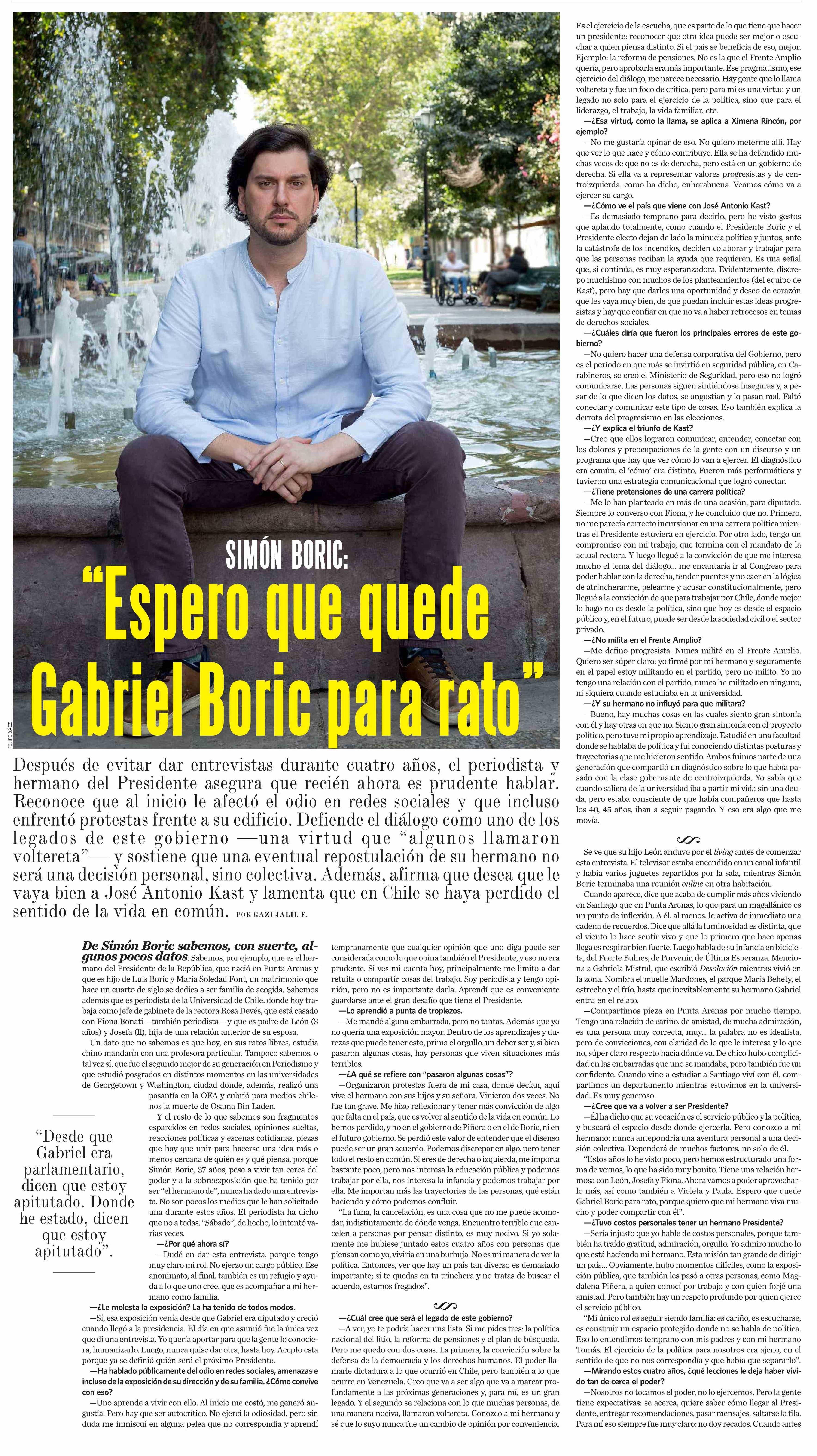 | Título: | “Espero que quede Gabriel Boric para rato” |