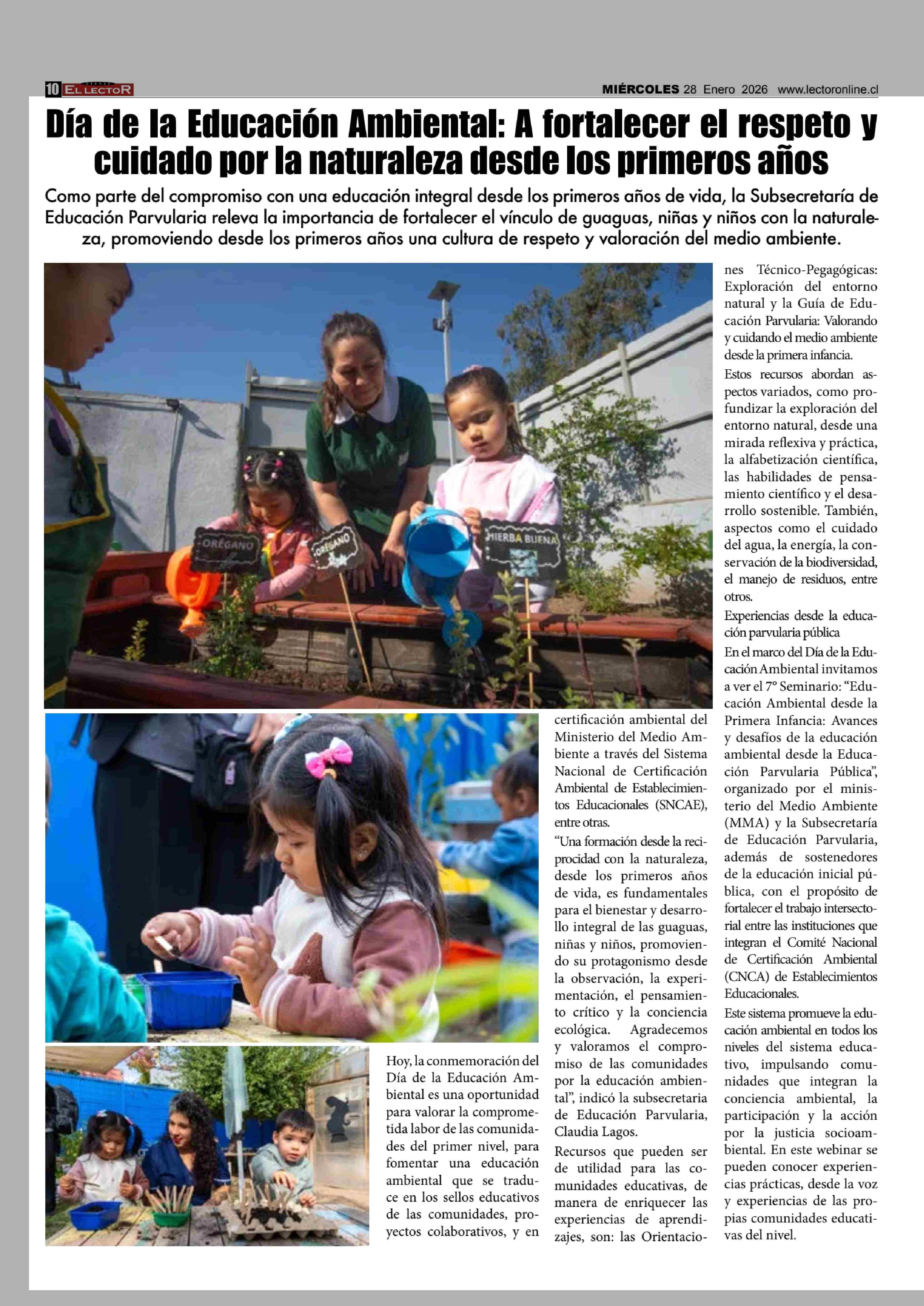 Día de la Educación Ambiental: A fortalecer el respeto y cuidado por la naturaleza desde los primeros años 28-01-2026 El Lector |