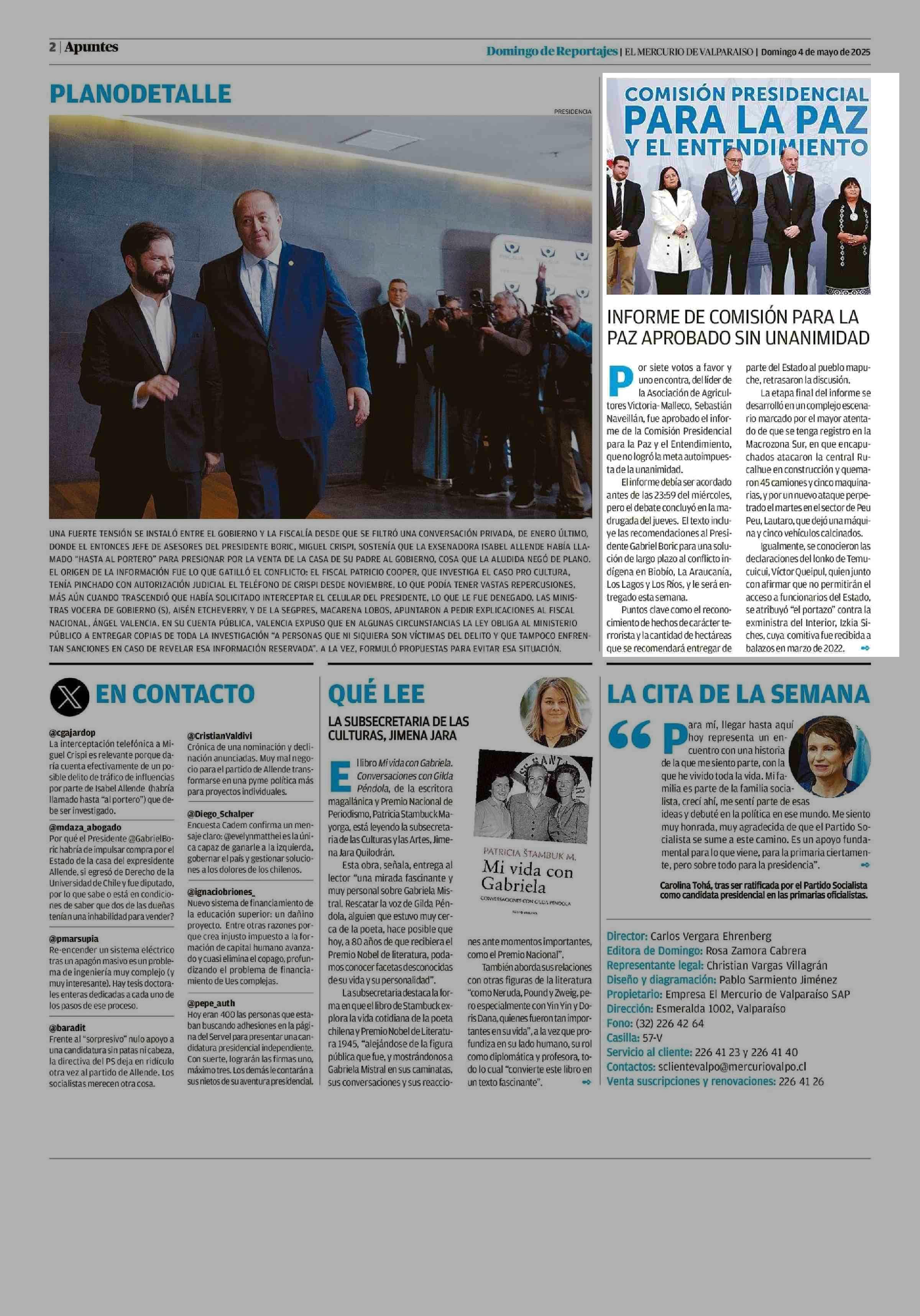 INFORME DE COMISIÓN PARA LA PAZ APROBADO SIN UNANIMIDAD 04-05-2025 El Mercurio de Valparaíso |