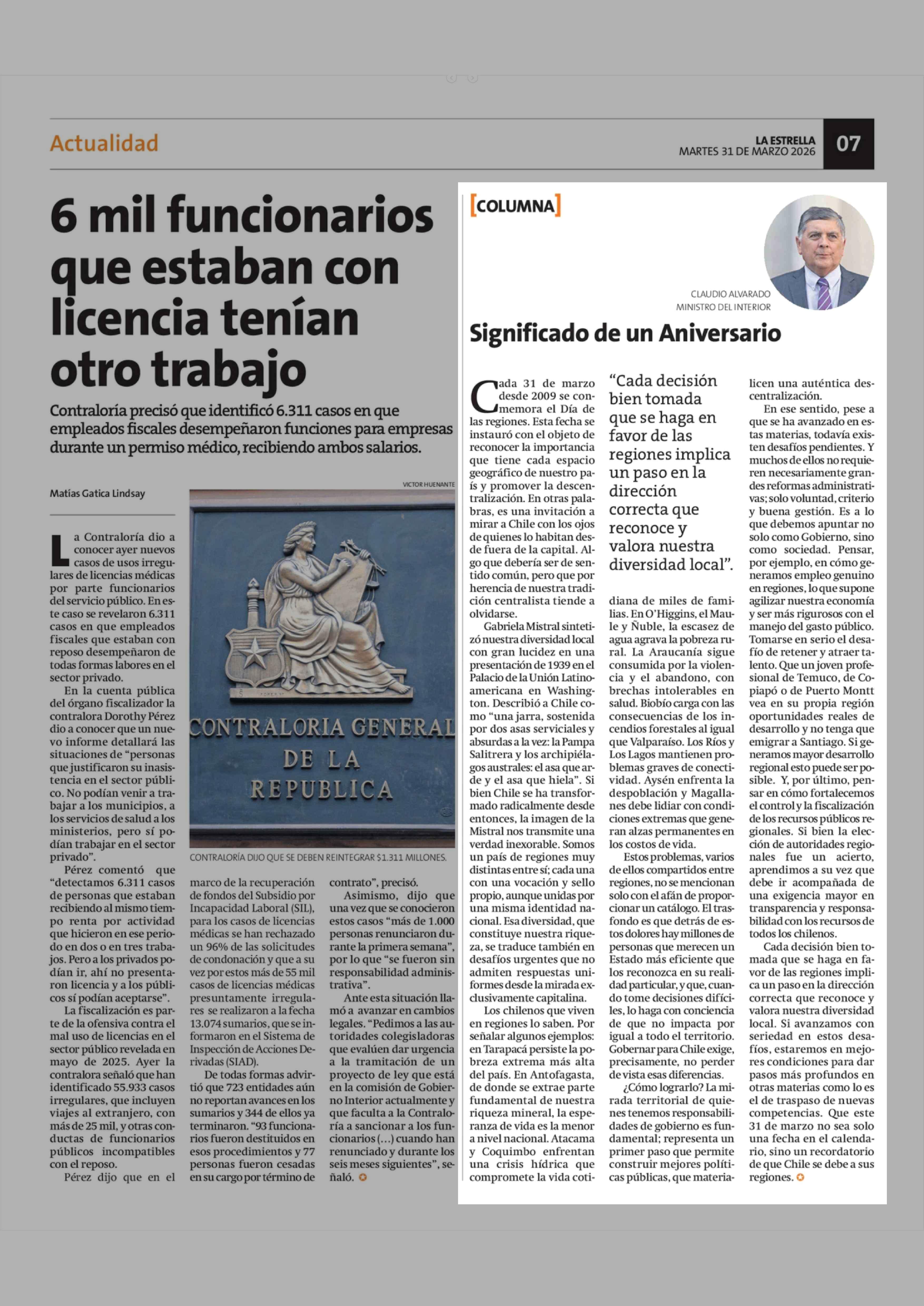 Columnas de Opinión: Significado de un Aniversario 31-03-2026 La Estrella de Concepción |