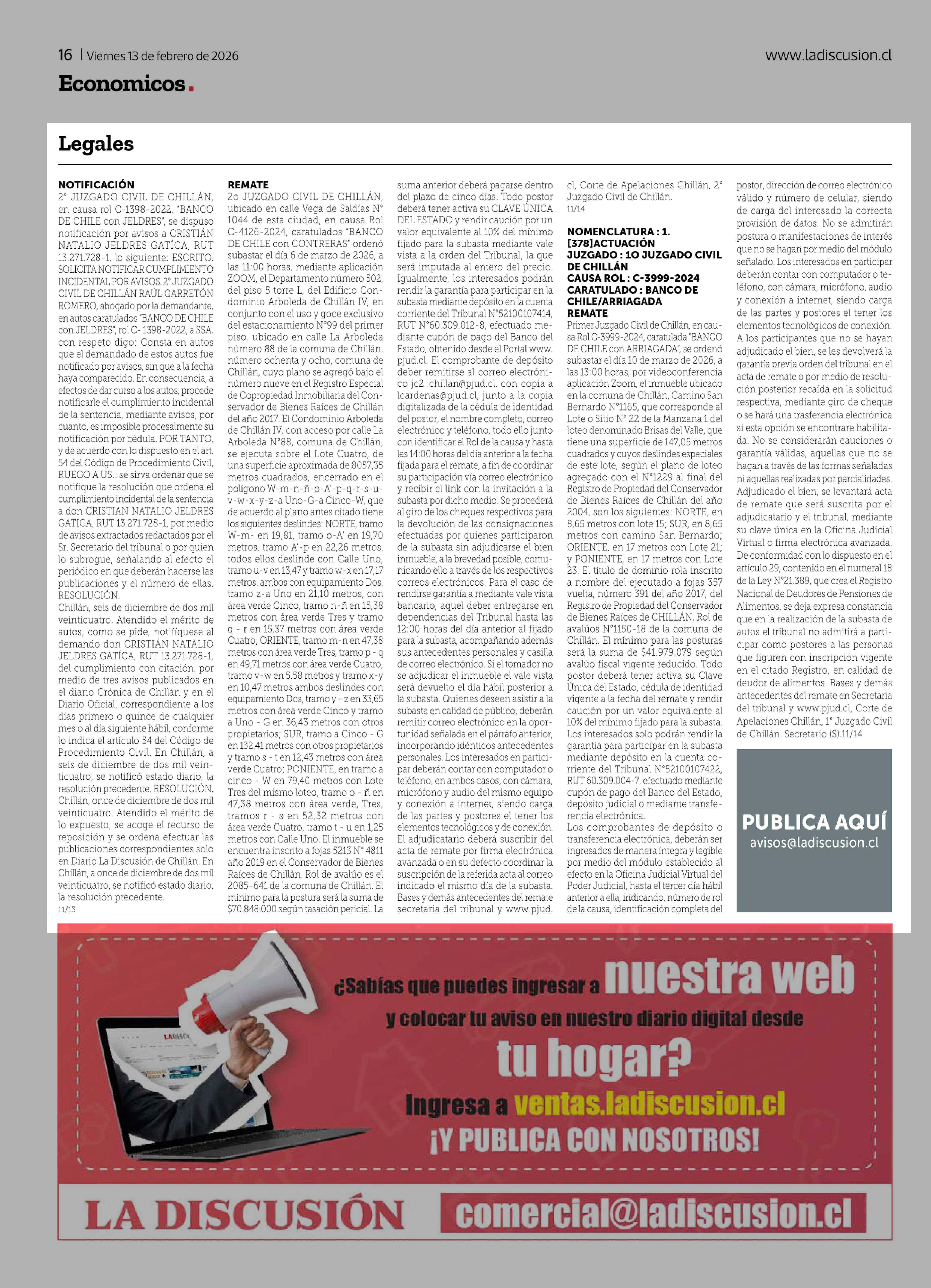 Legales 13-02-2026 La Discusión |
