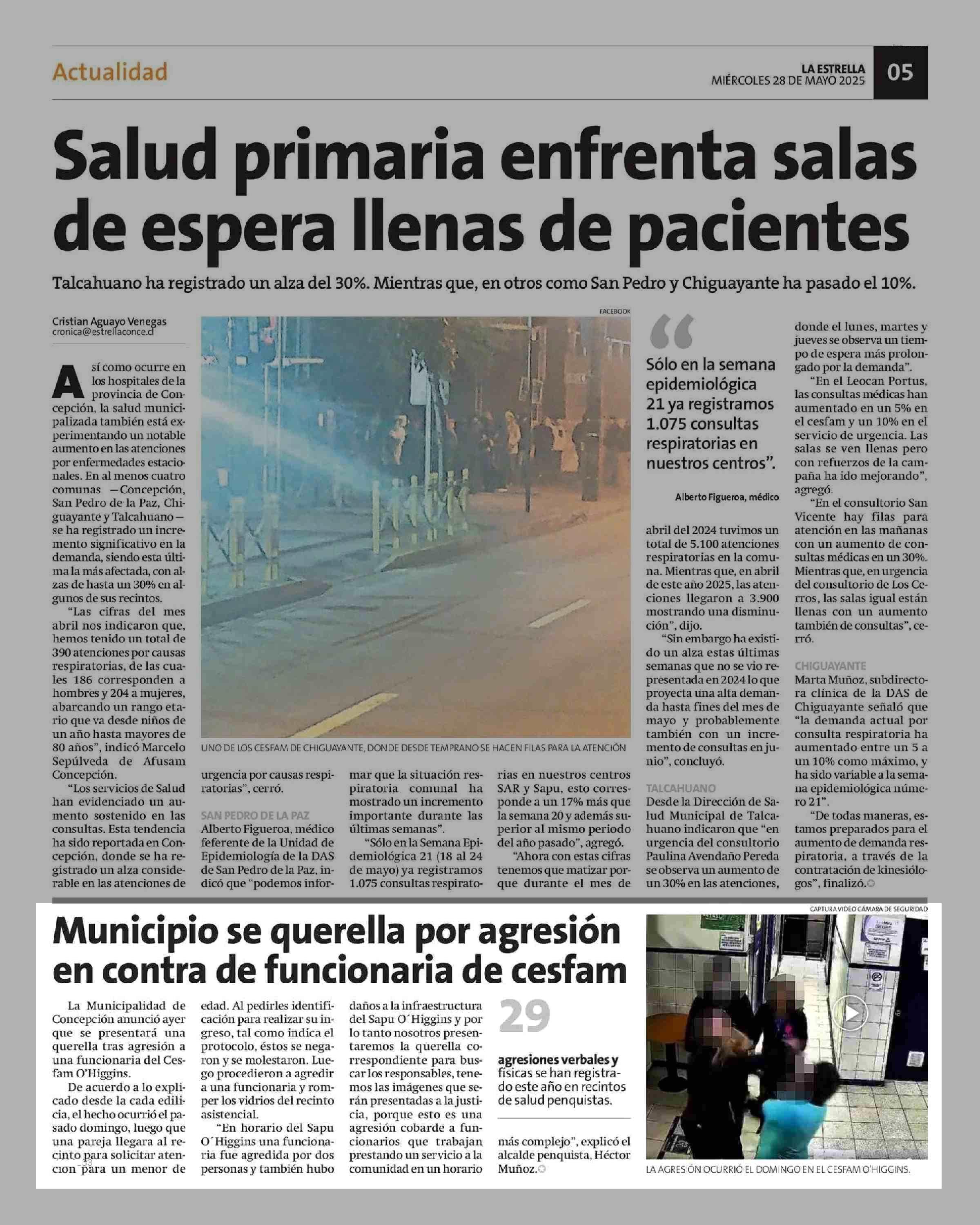Municipio se querella por agresión en contra de funcionaria de cesfam 28-05-2025 La Estrella de Concepción |