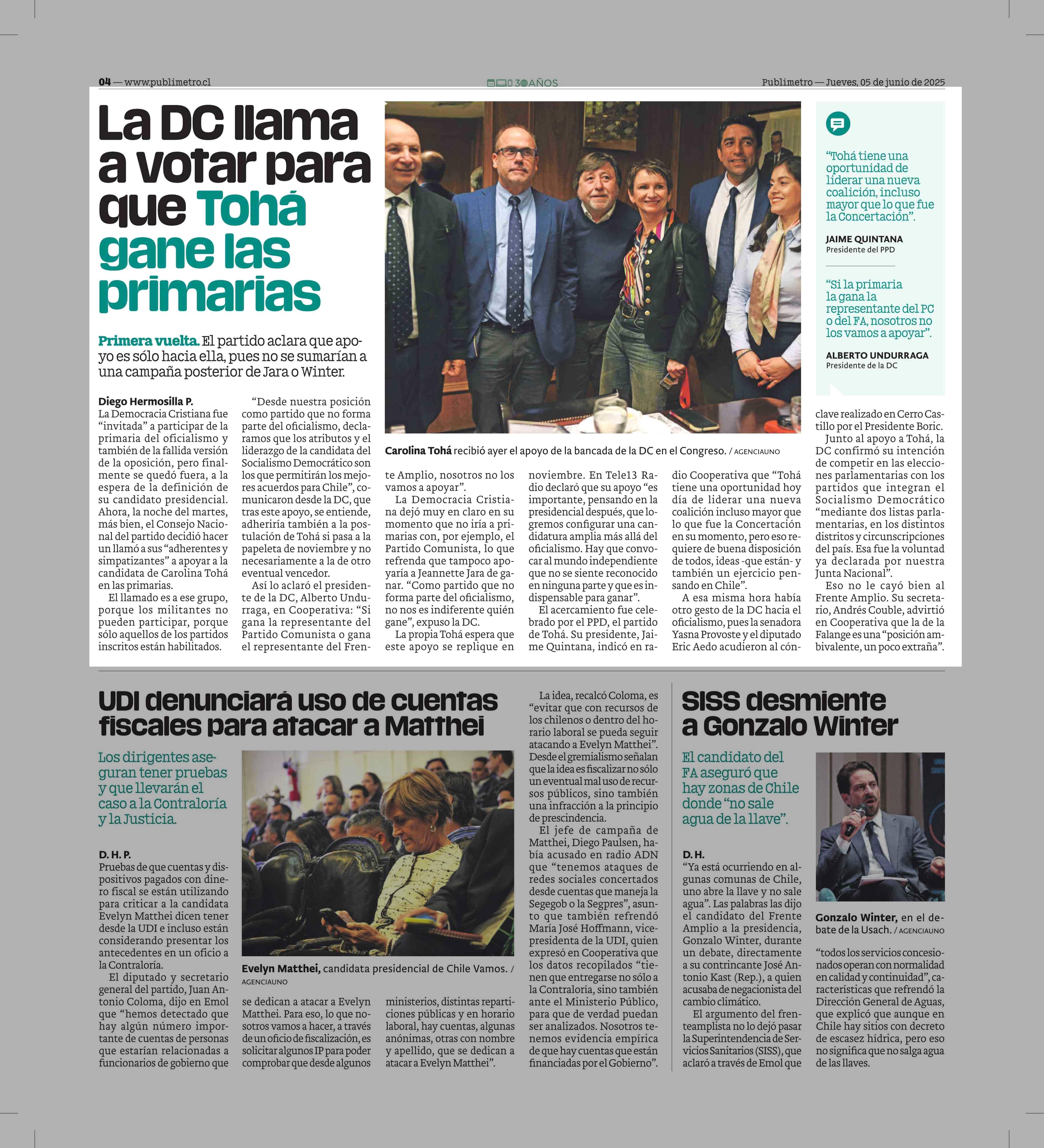 La DC llama a votar para que Tohá gane las primarias 05-06-2025 Publimetro |