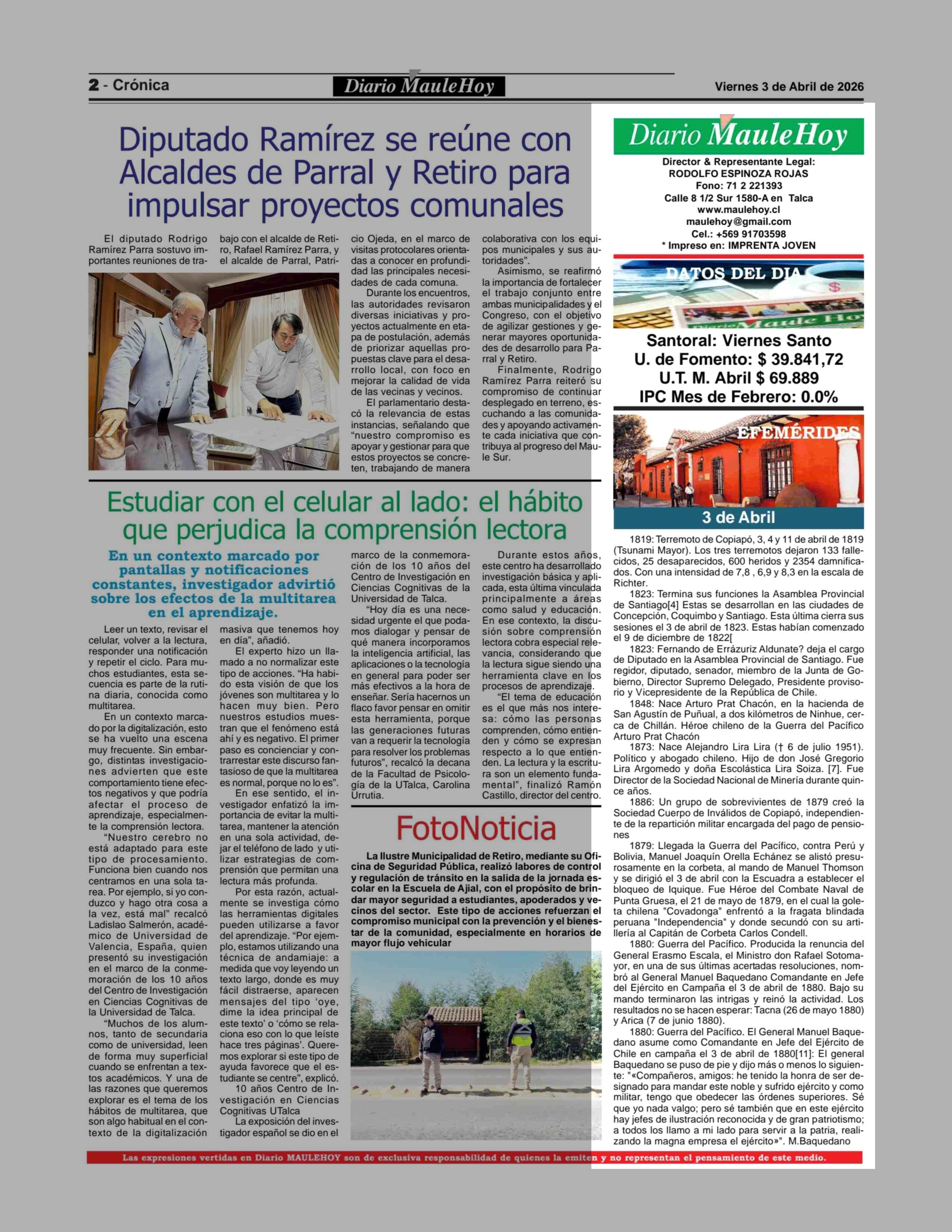 Fecha: 03-04-2026 Sector: Noticia general Región: Región del Maule