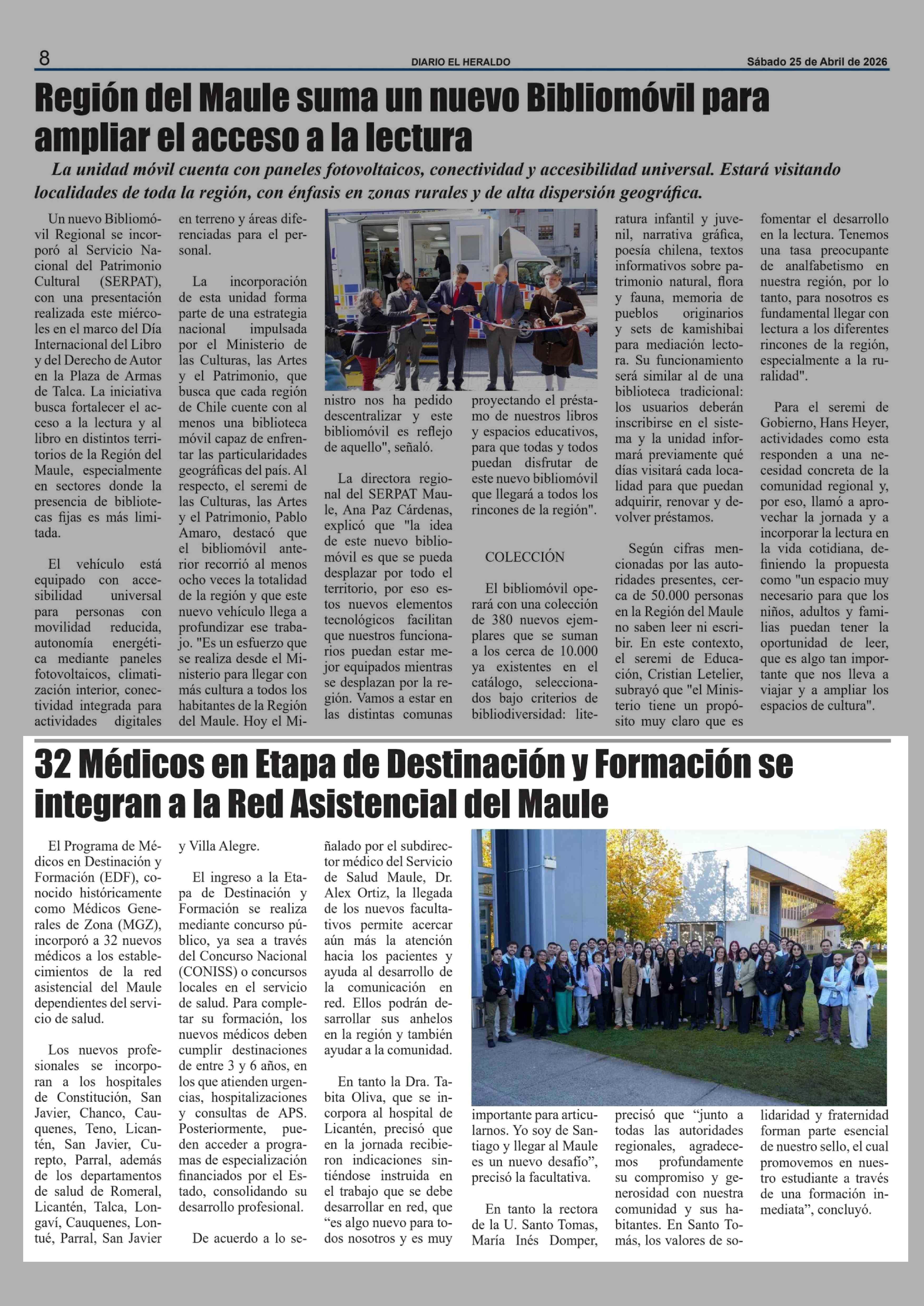 32 Médicos en Etapa de Destinación y Formación se integran a la Red Asistencial del Maule 25-04-2026 El Heraldo |