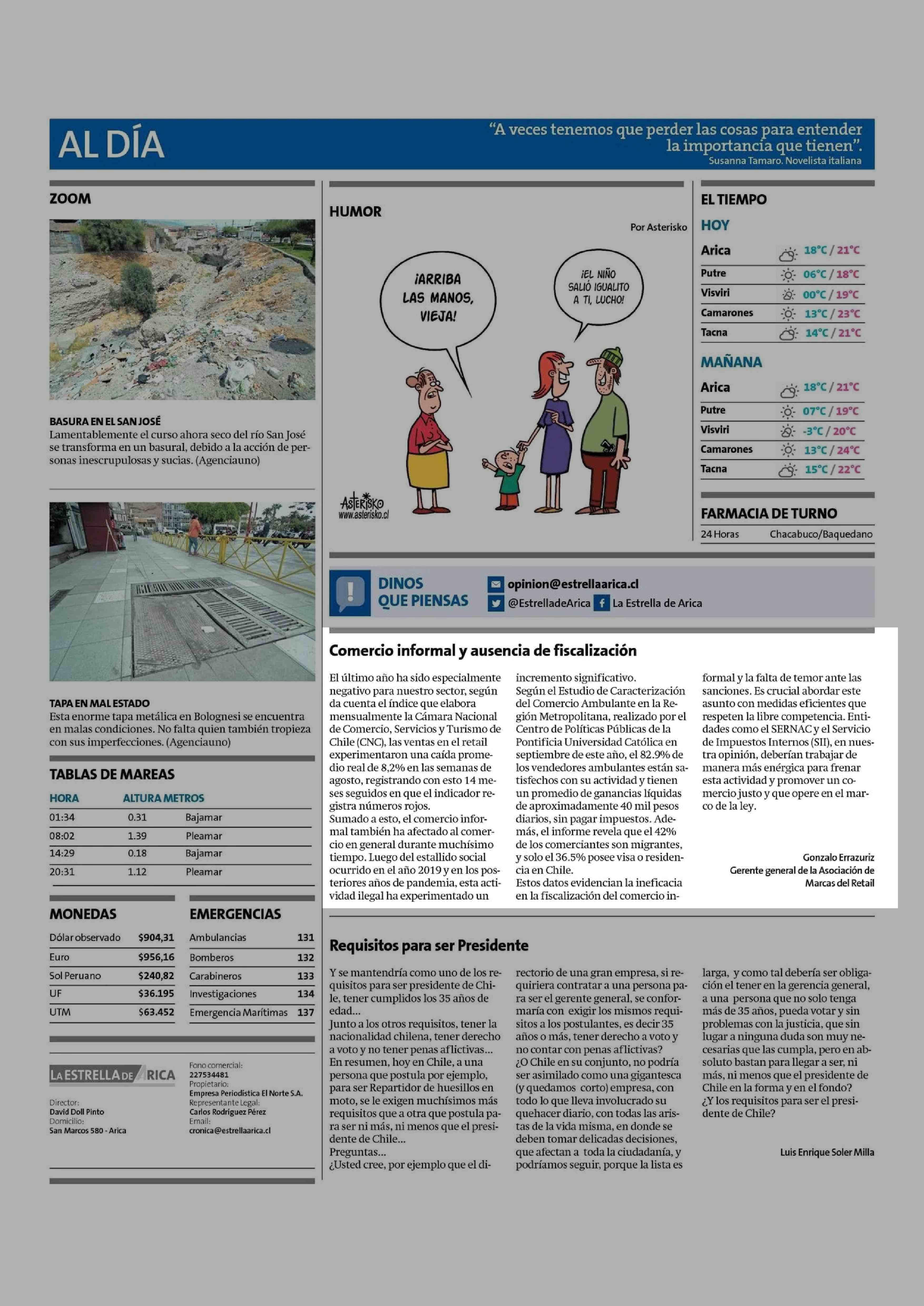 Comercio informal y ausencia de fiscalización 28-09-2023 La Estrella de Arica |