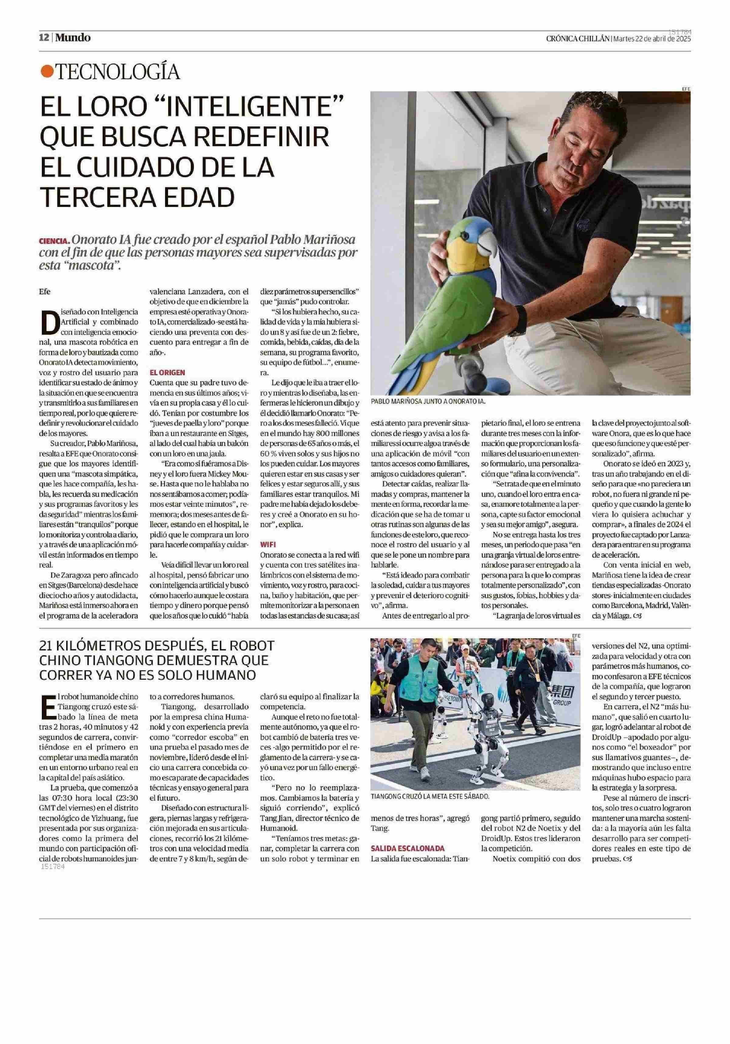 EL LORO “INTELIGENTE” QUE BUSCA REDEFINIR EL CUIDADO DELA TERCERA EDAD 22-04-2025 Crónica de Chillán |