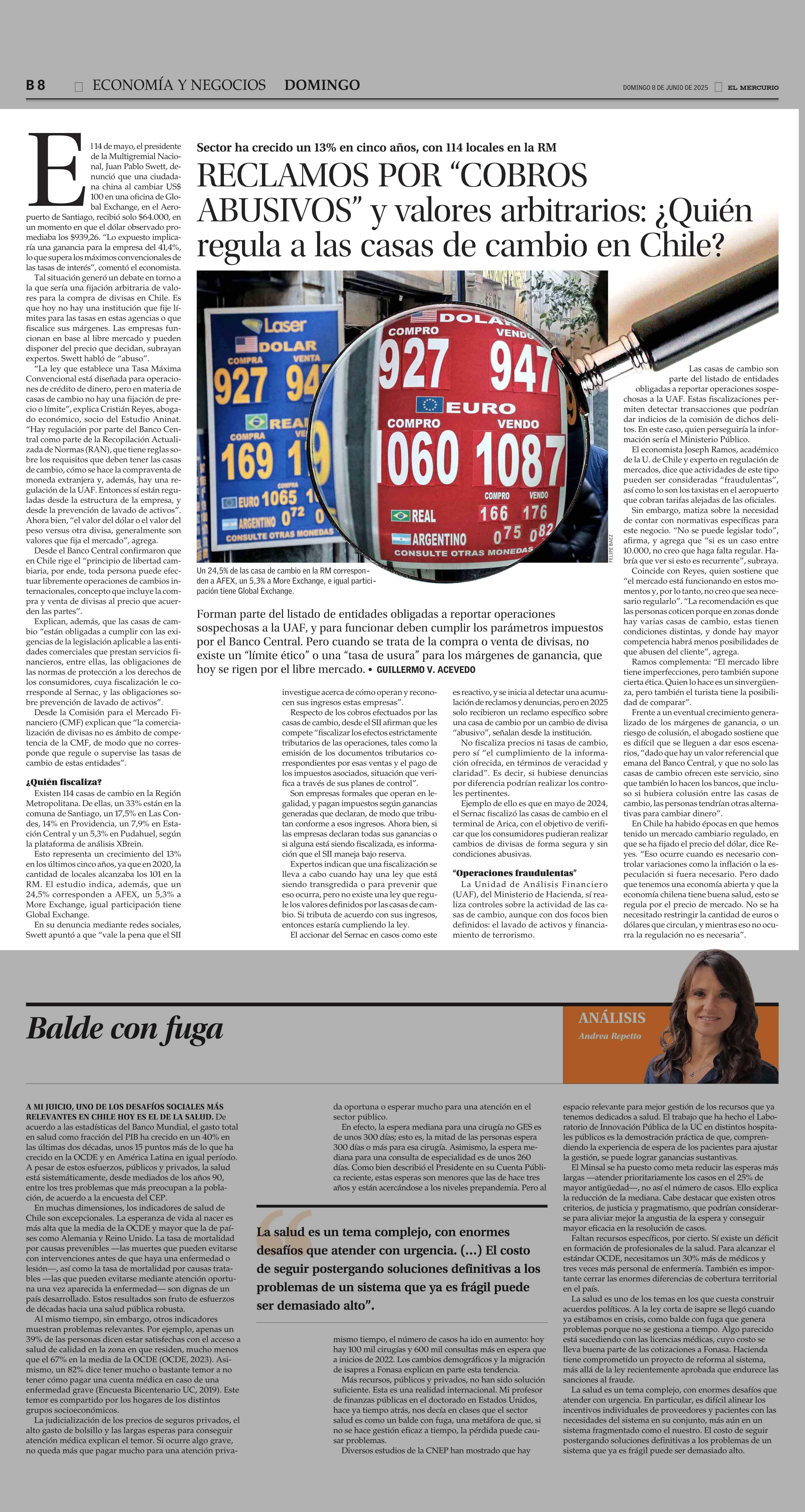 RECLAMOS POR "COBROS ABUSIVOS" y valores arbitrarios: ¿Quién regula a las casas de cambio en Chile? 08-06-2025 El Mercurio |