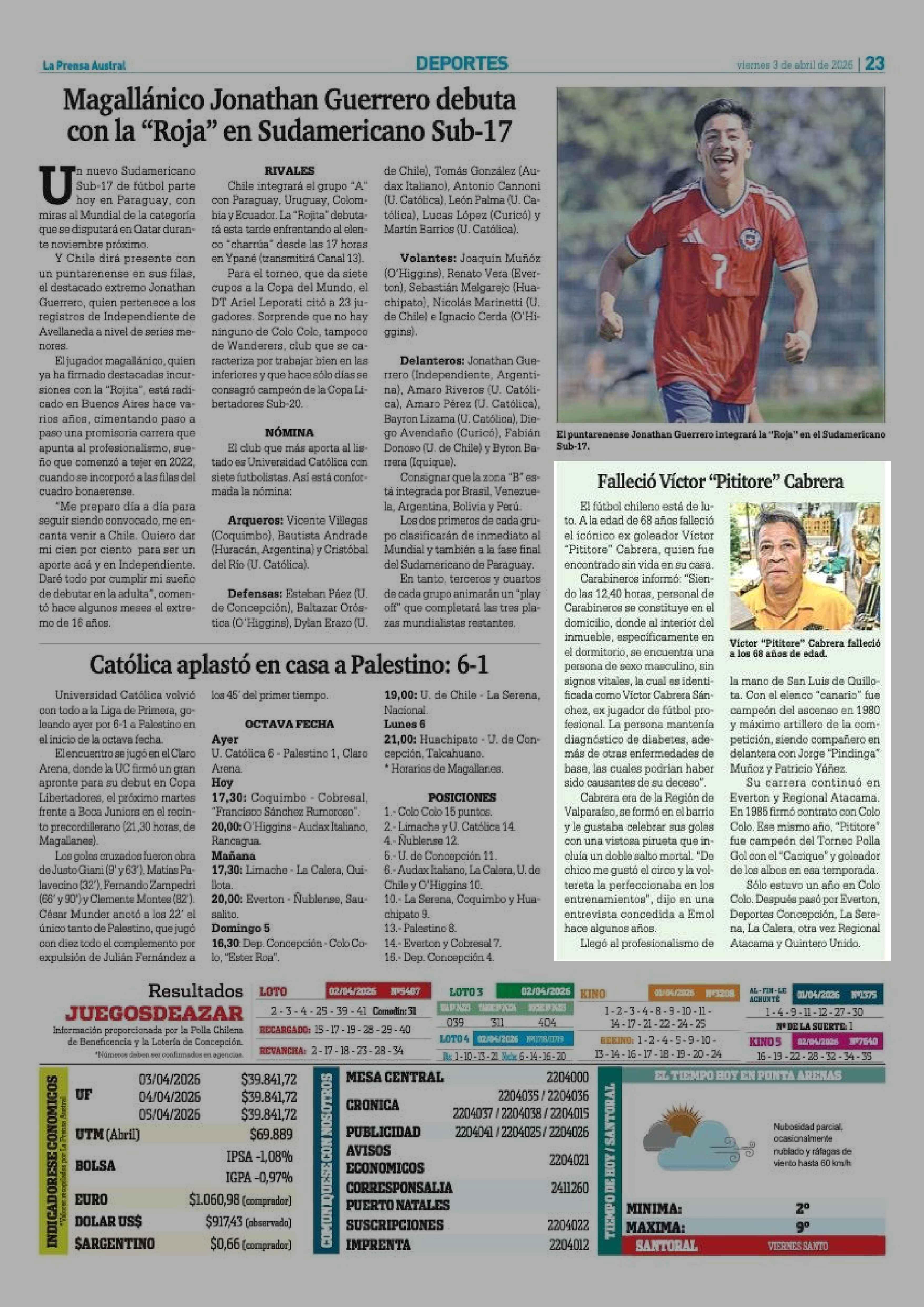 Falleció Víctor "Pititore" Cabrera 03-04-2026 La Prensa Austral |