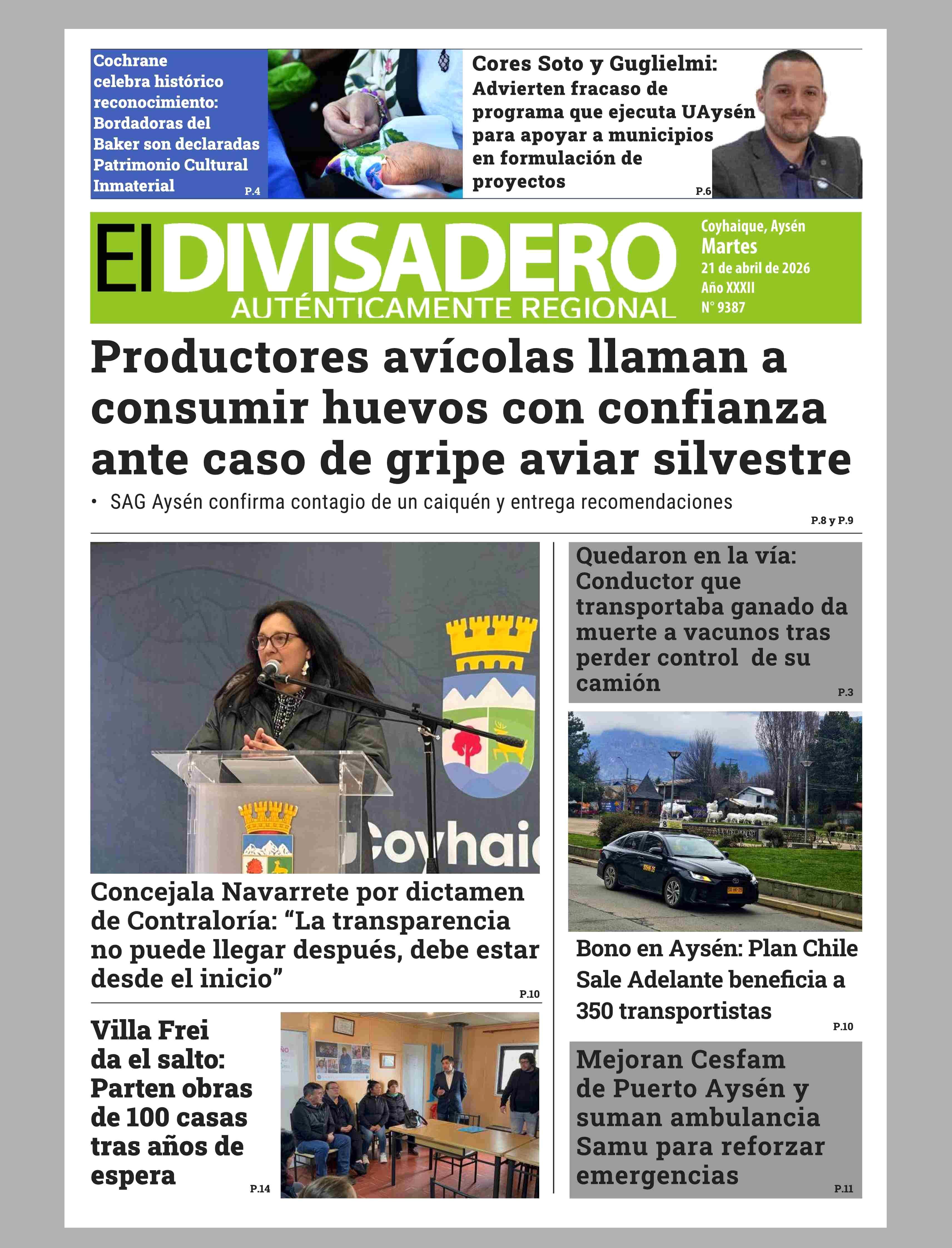 Fecha: 21-04-2026 Sector: Portada Región: Región Aysén del General Carlos Ibáñez del Campo