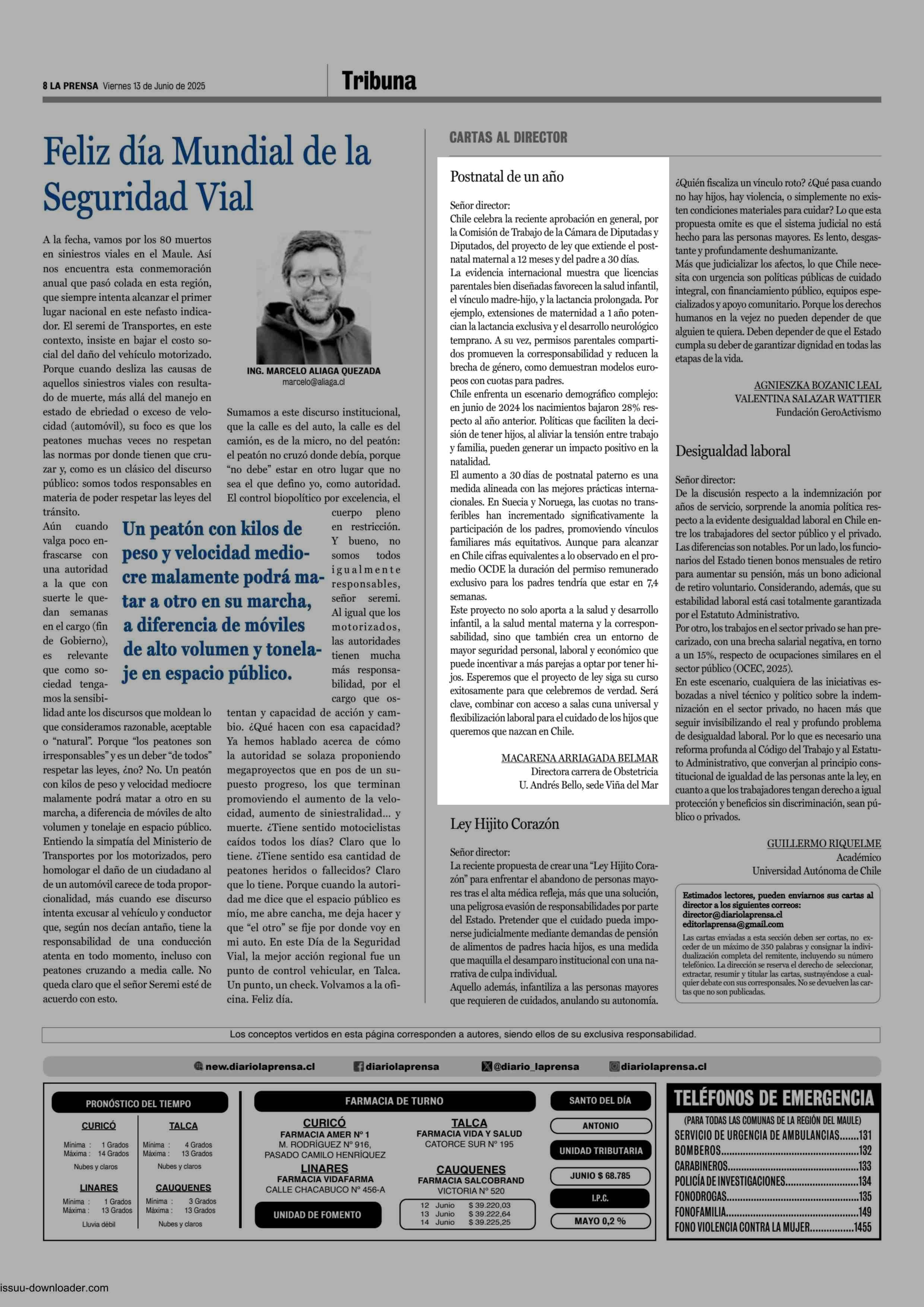 CARTAS: Postnatal de un año 13-06-2025 La Prensa de Curicó |