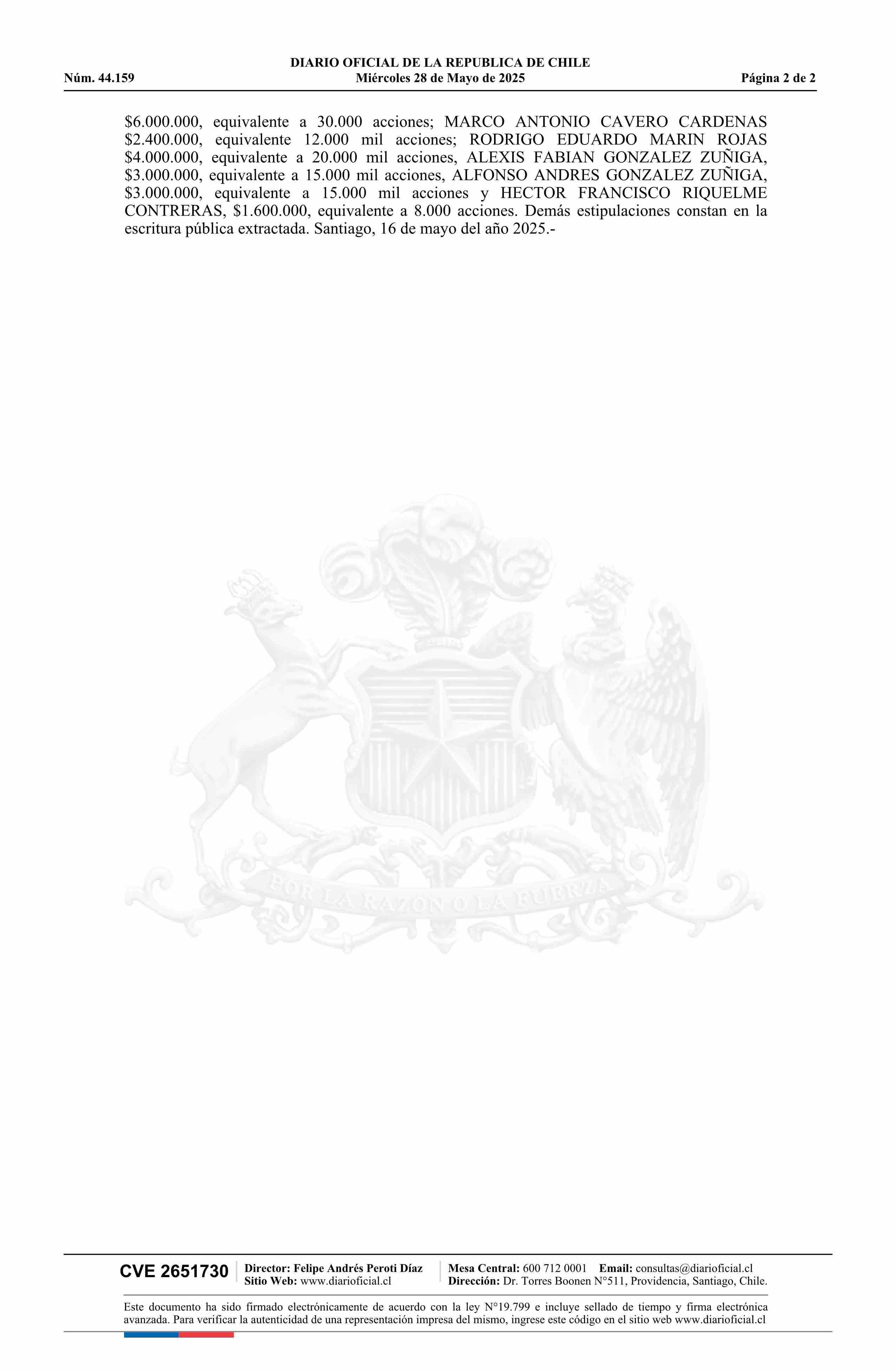 | Fuente: | Diario Oficial Edición Electrónica (Diario Oficial de Chile - 5 Empresas Y Cooper) | Página(s): | 1-2 |
