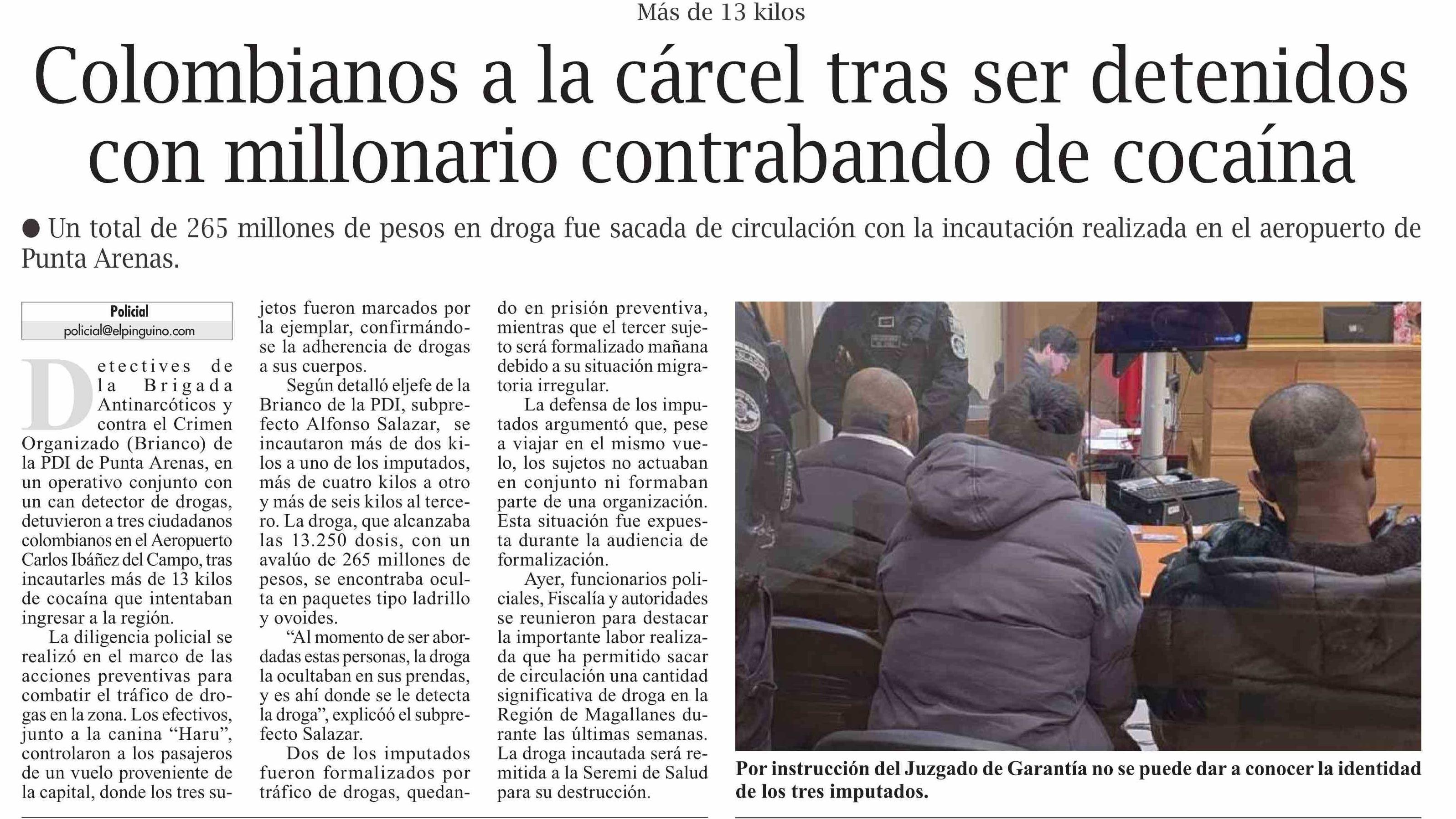 Colombianos a la cárcel tras ser detenidos con millonario contrabando de cocaína 08-06-2025 El Pingüino |