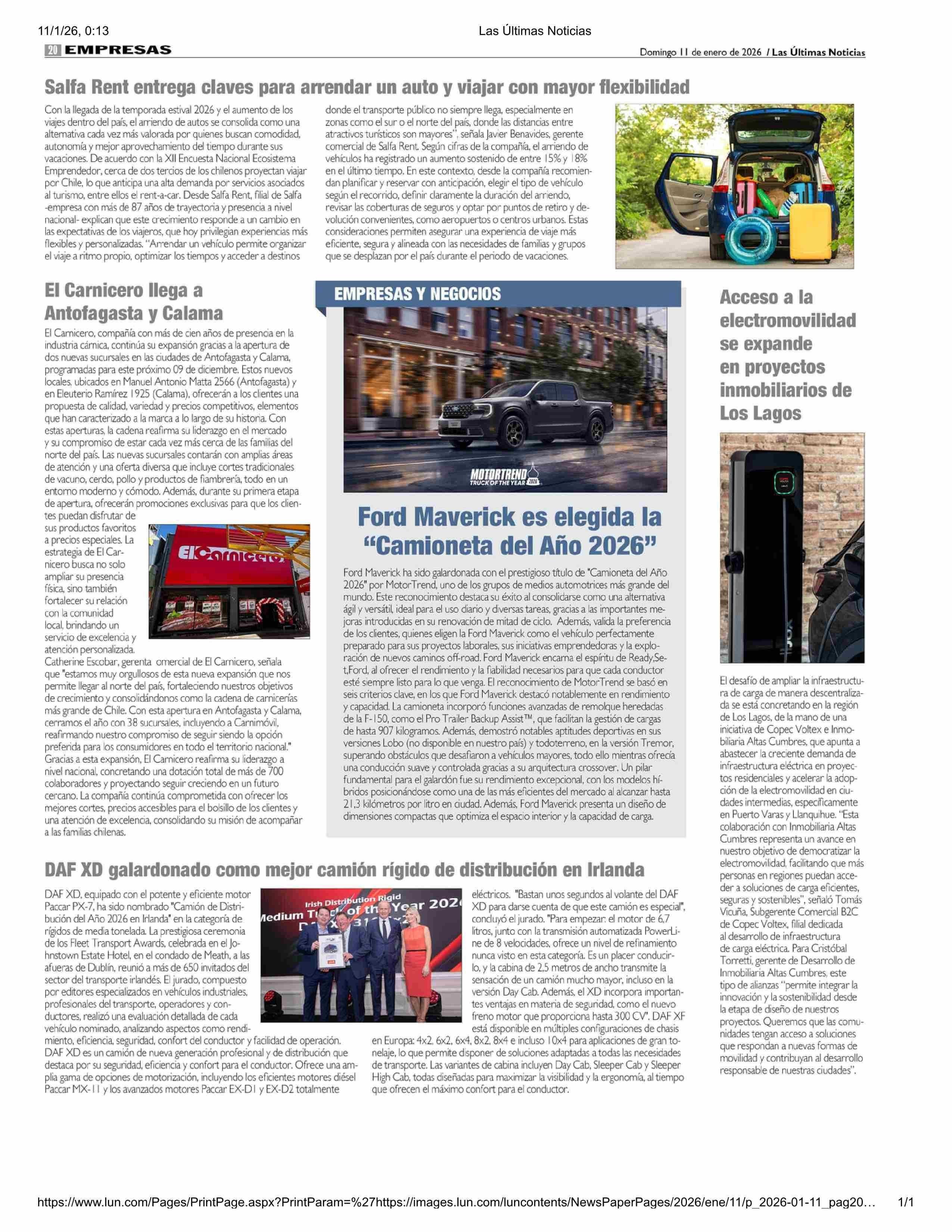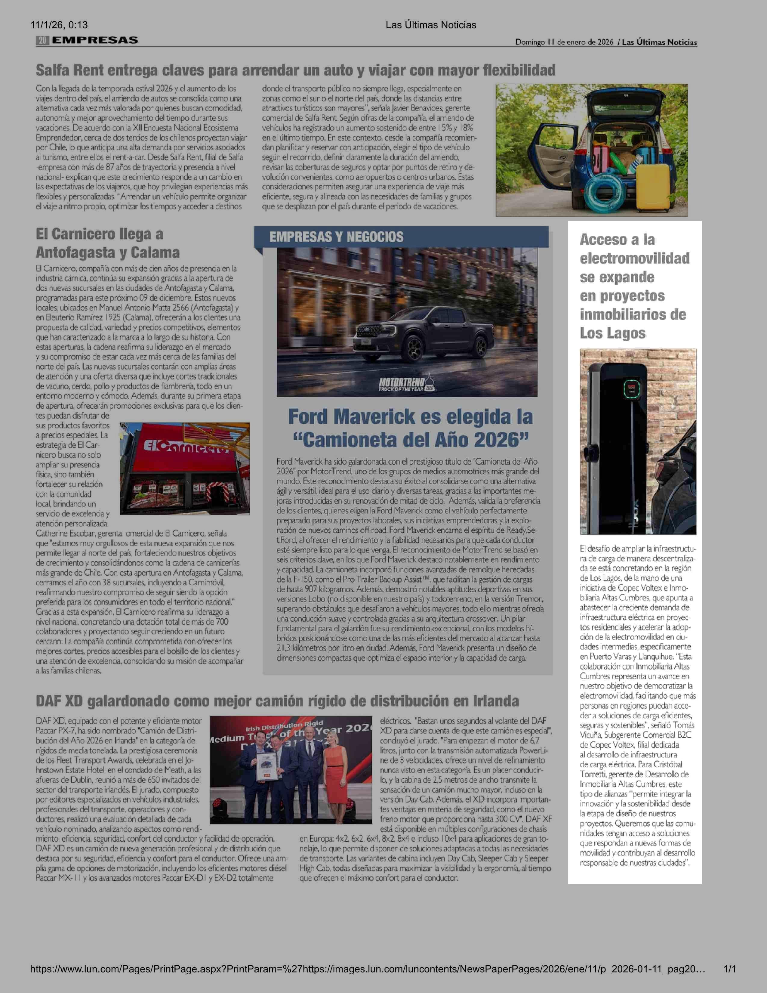 Acceso a la electromovilidad se expande en proyectos inmobiliarios de Los Lagos 11-01-2026 Las Últimas Noticias |