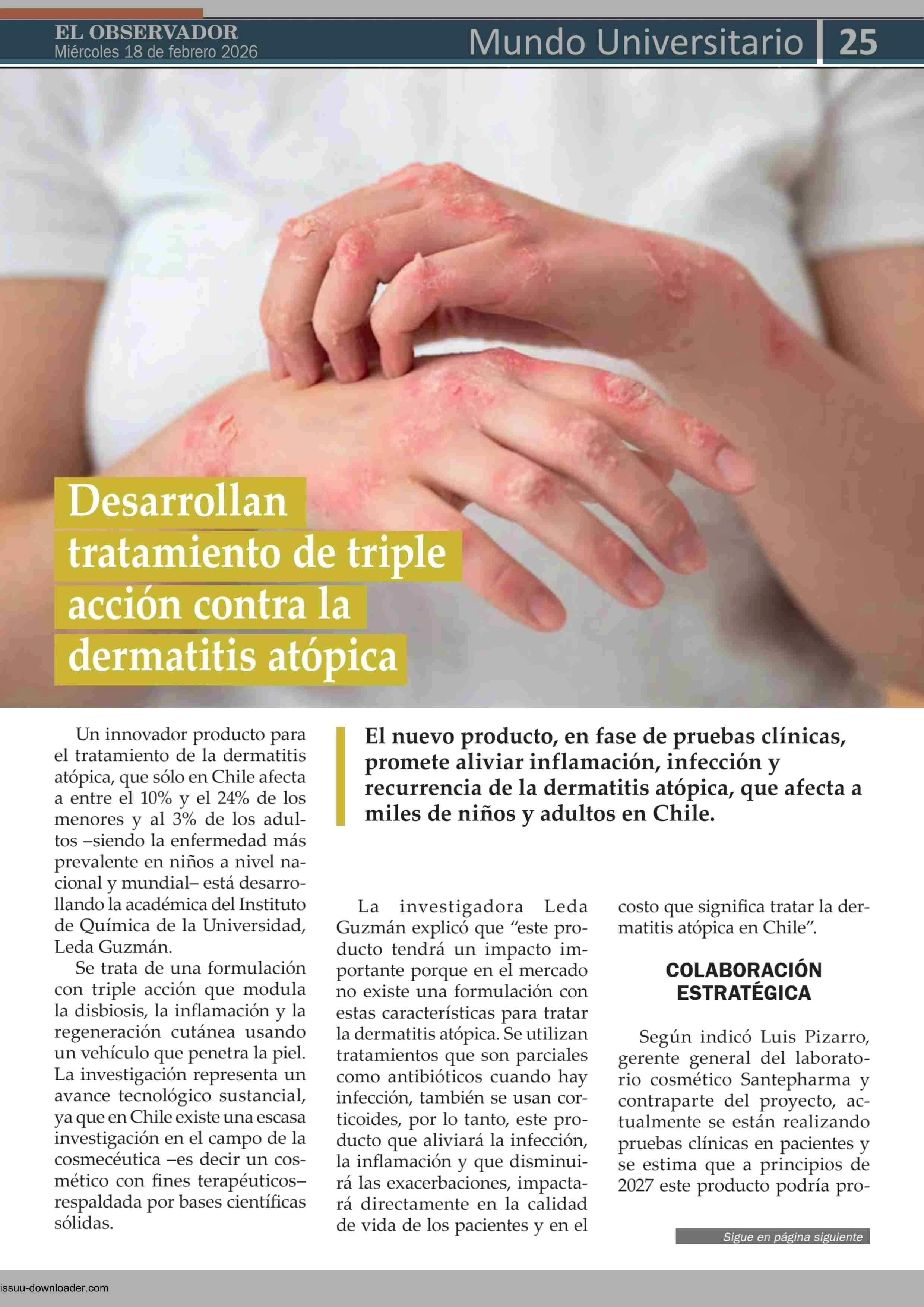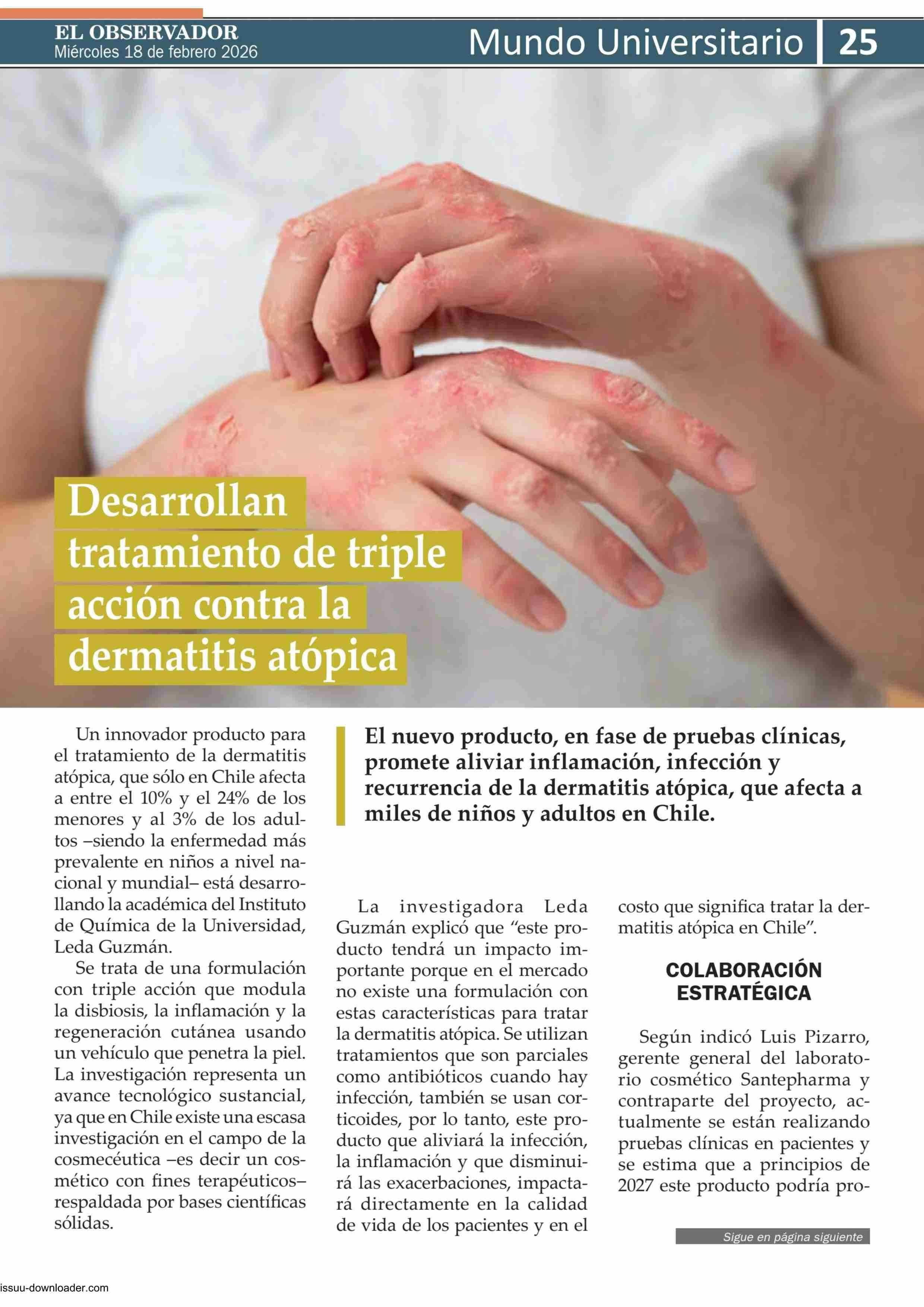 Desarrollan tratamiento de triple acción contra la dermatitis atópica 18-02-2026 El Observador Vespertino |
