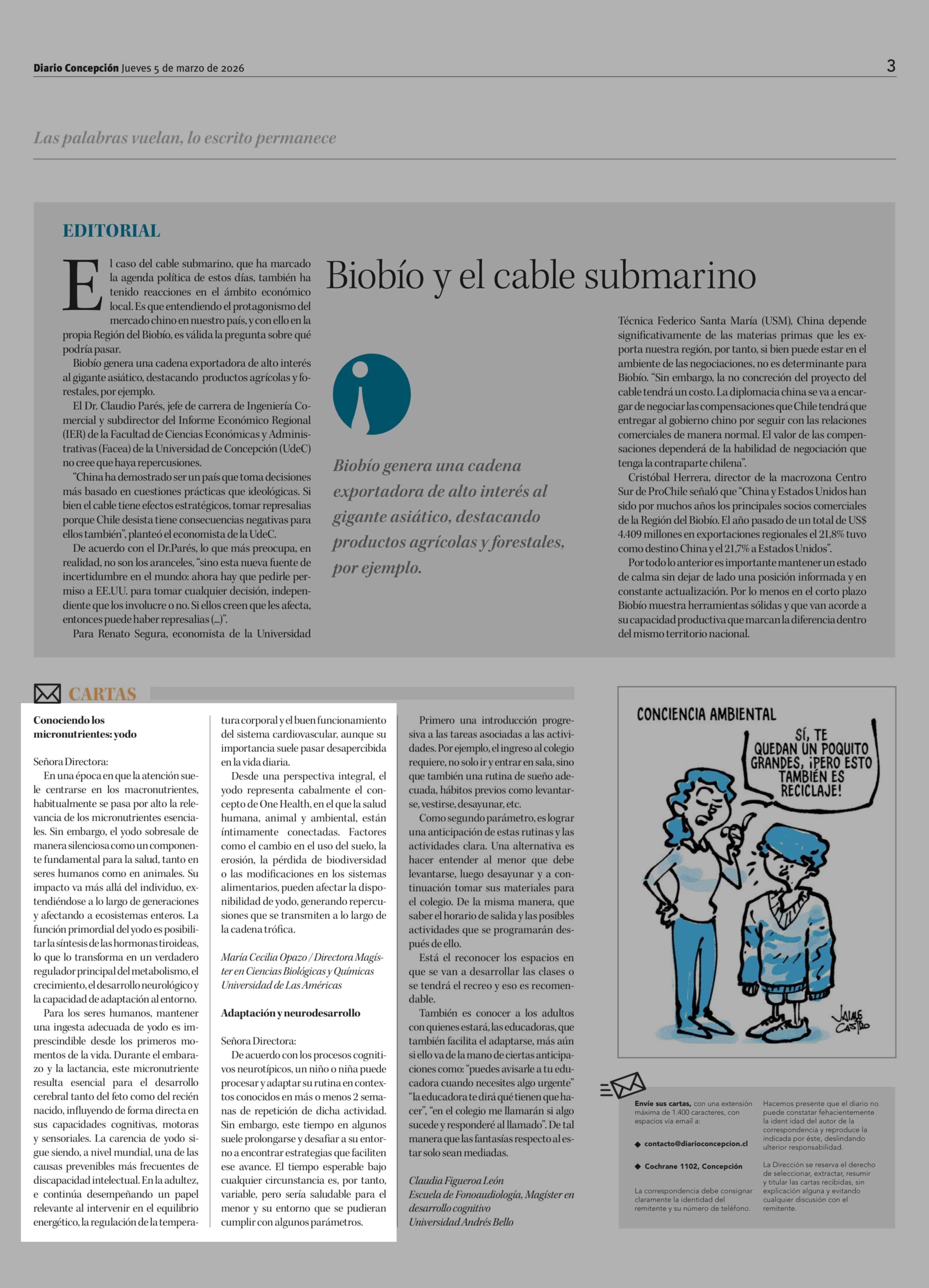 Cartas: Conociendo los micronutrientes: yodo 05-03-2026 Diario Concepción |