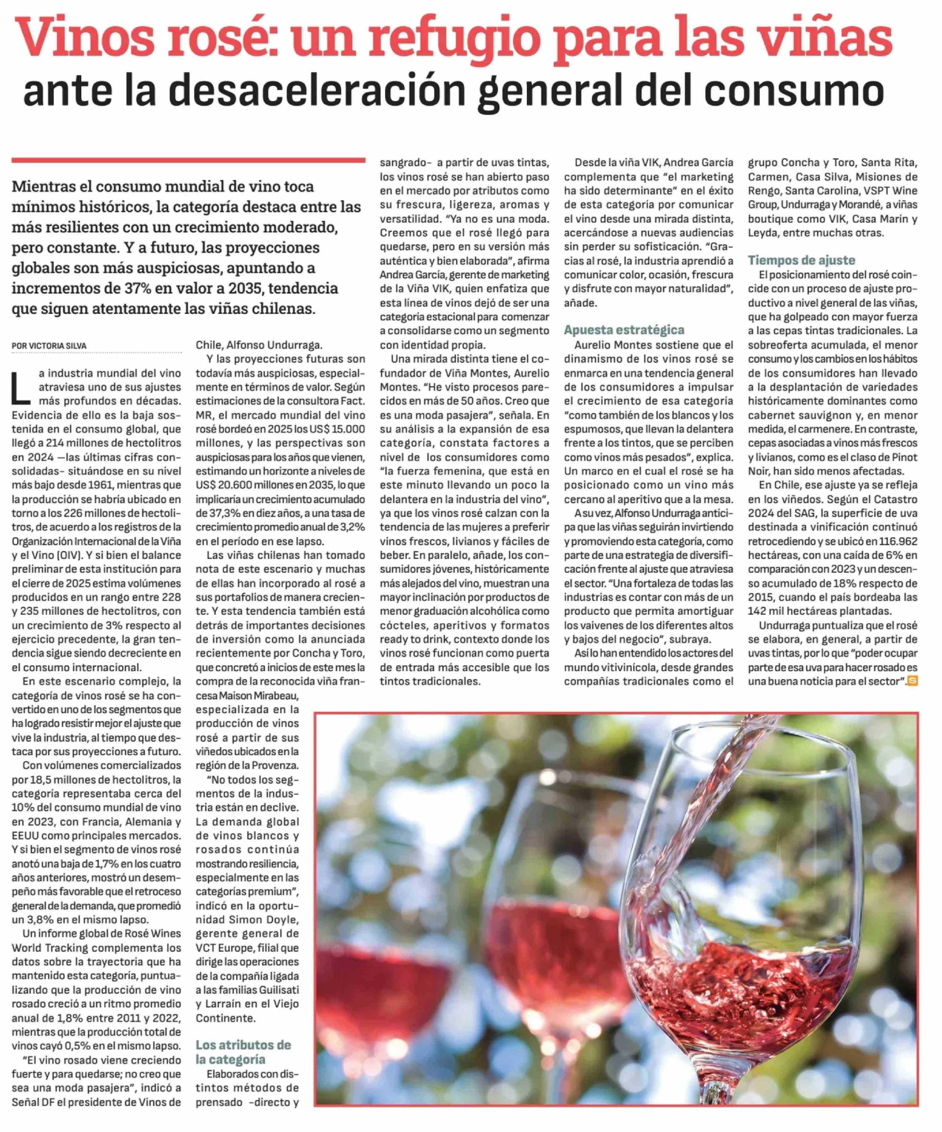 Vinos rosé: un refugio para las viñas ante la desaceleración general del consumo 14-02-2026 Diario Financiero |
