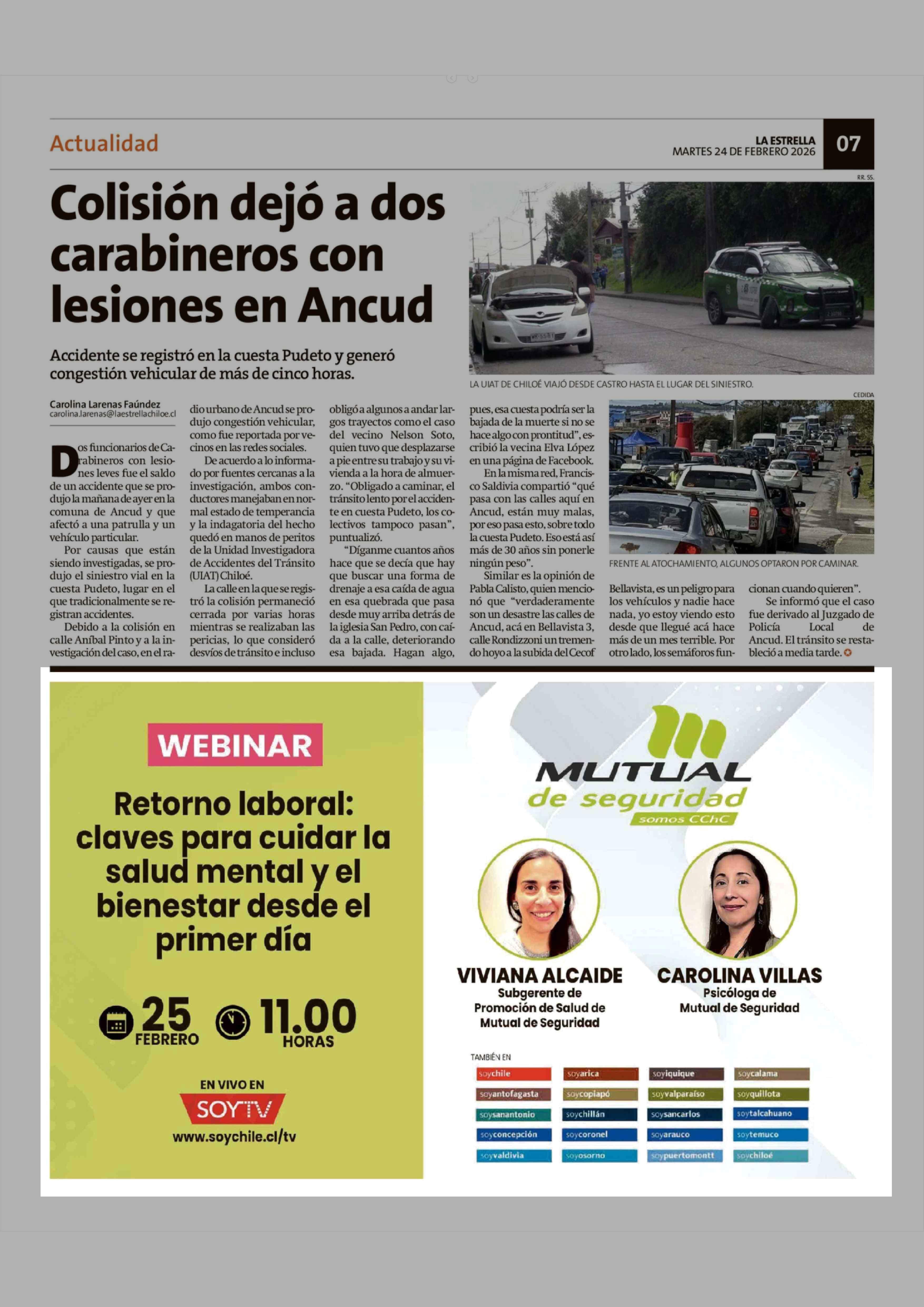 Aviso Publicitario: MUTUAL de seguridad 24-02-2026 La Estrella de Chiloé |