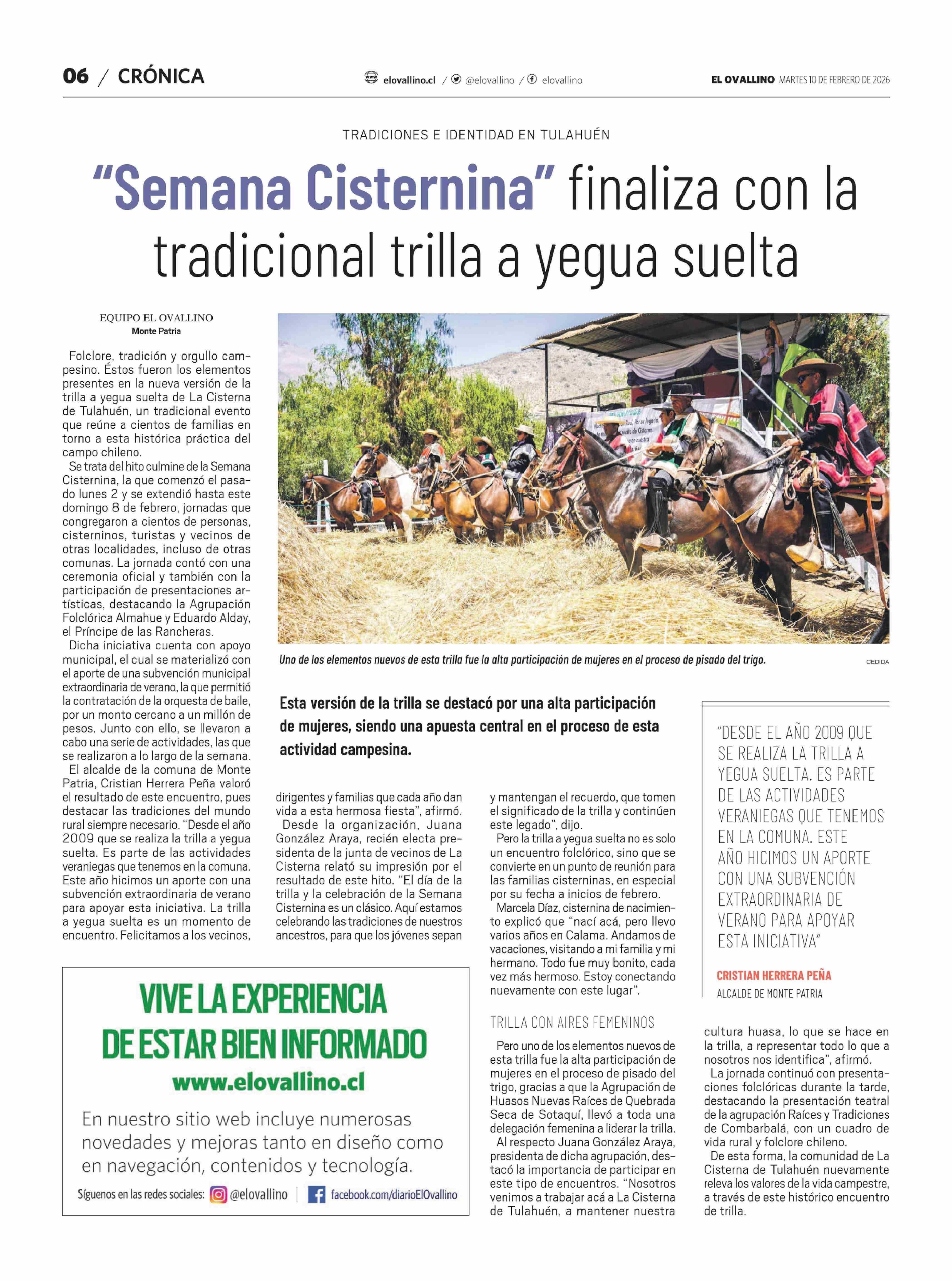 Título: "Semana Cisternina" finaliza con la tradicional trilla a yegua suelta