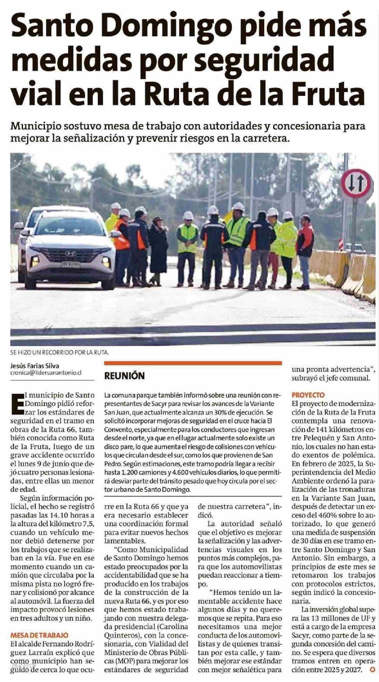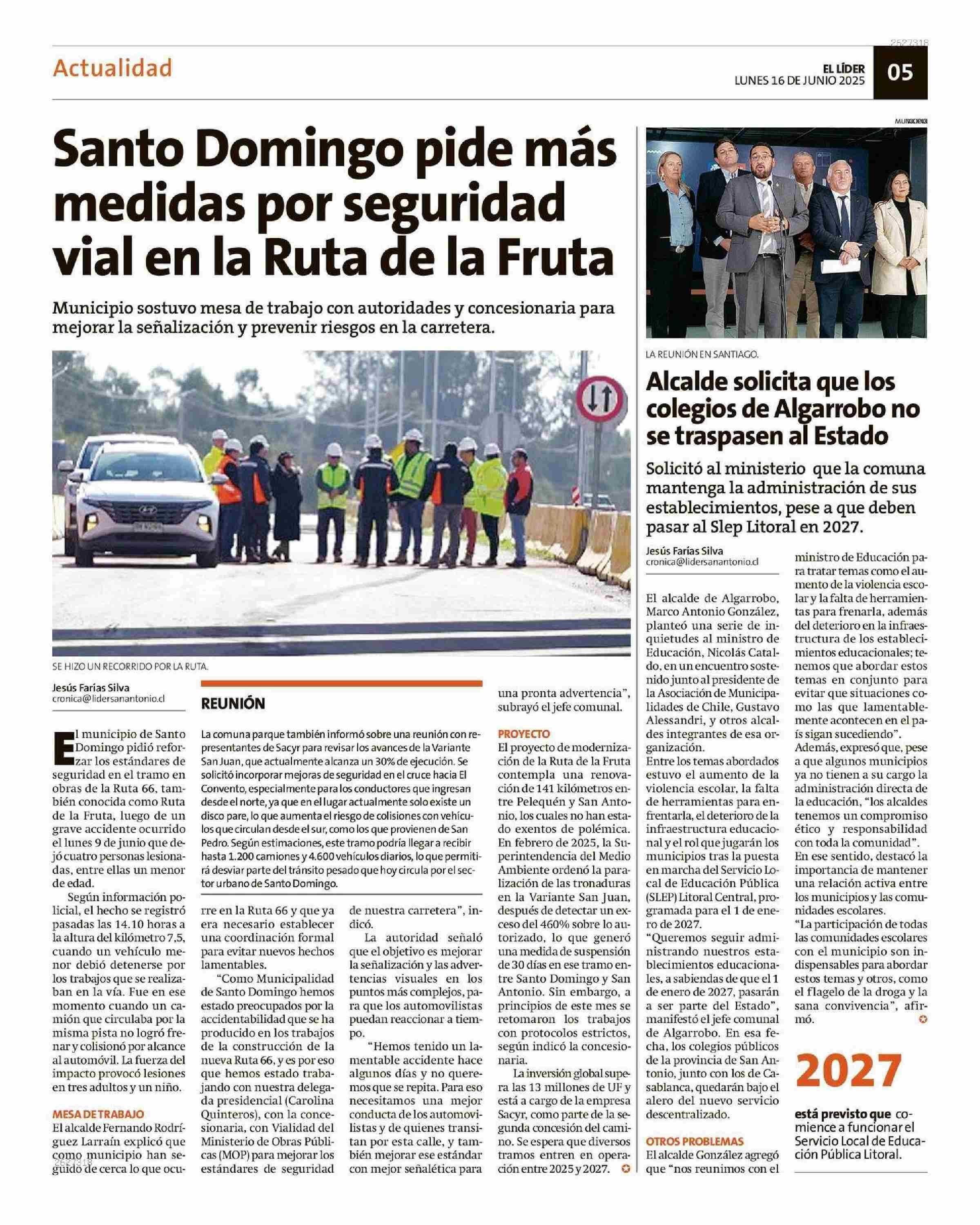Santo Domingo pide más medidas por seguridad vial en la Ruta de la Fruta 16-06-2025 El Líder |