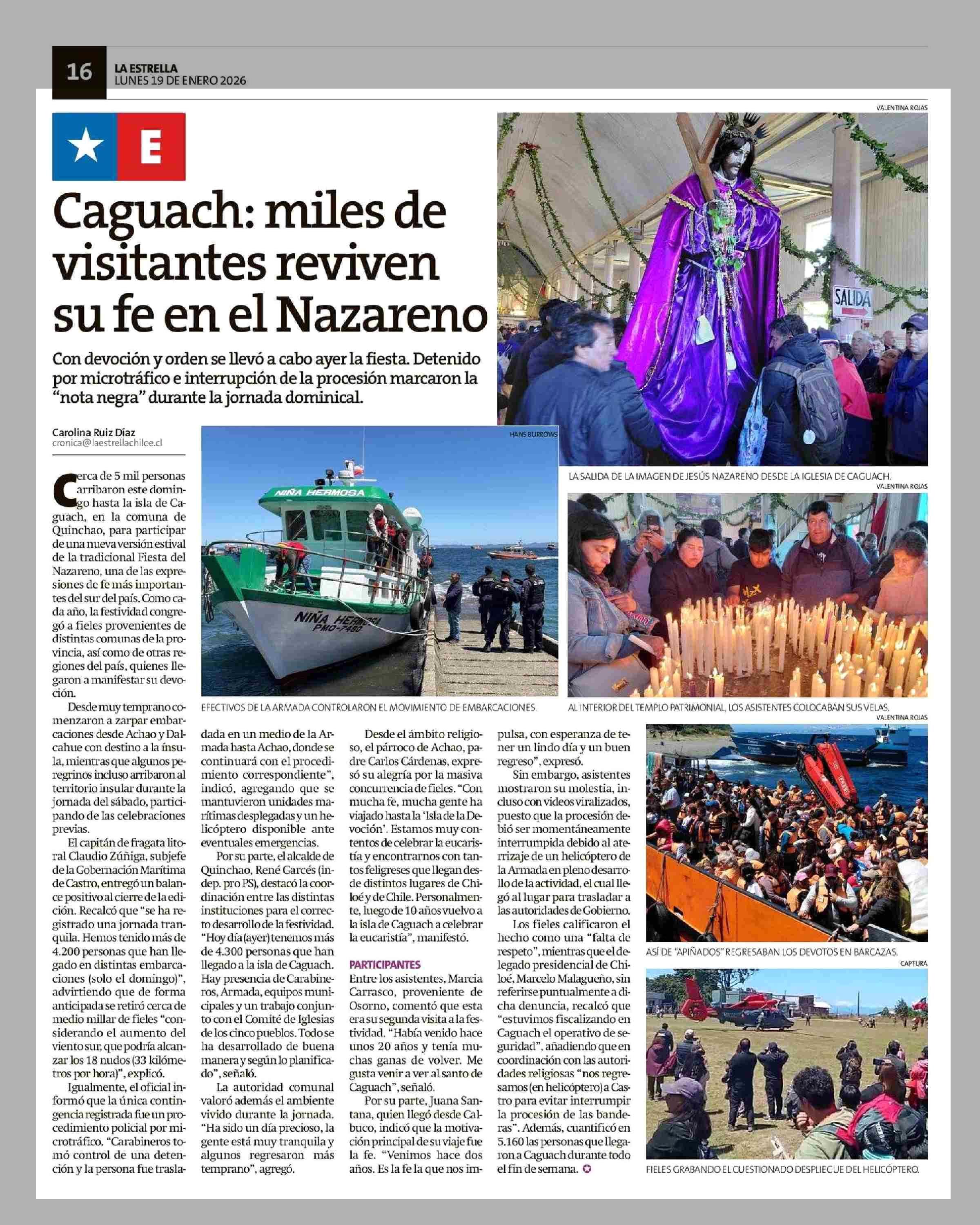 Caguach: miles de visitantes reviven su fe en el Nazareno 19-01-2026 La Estrella de Chiloé |