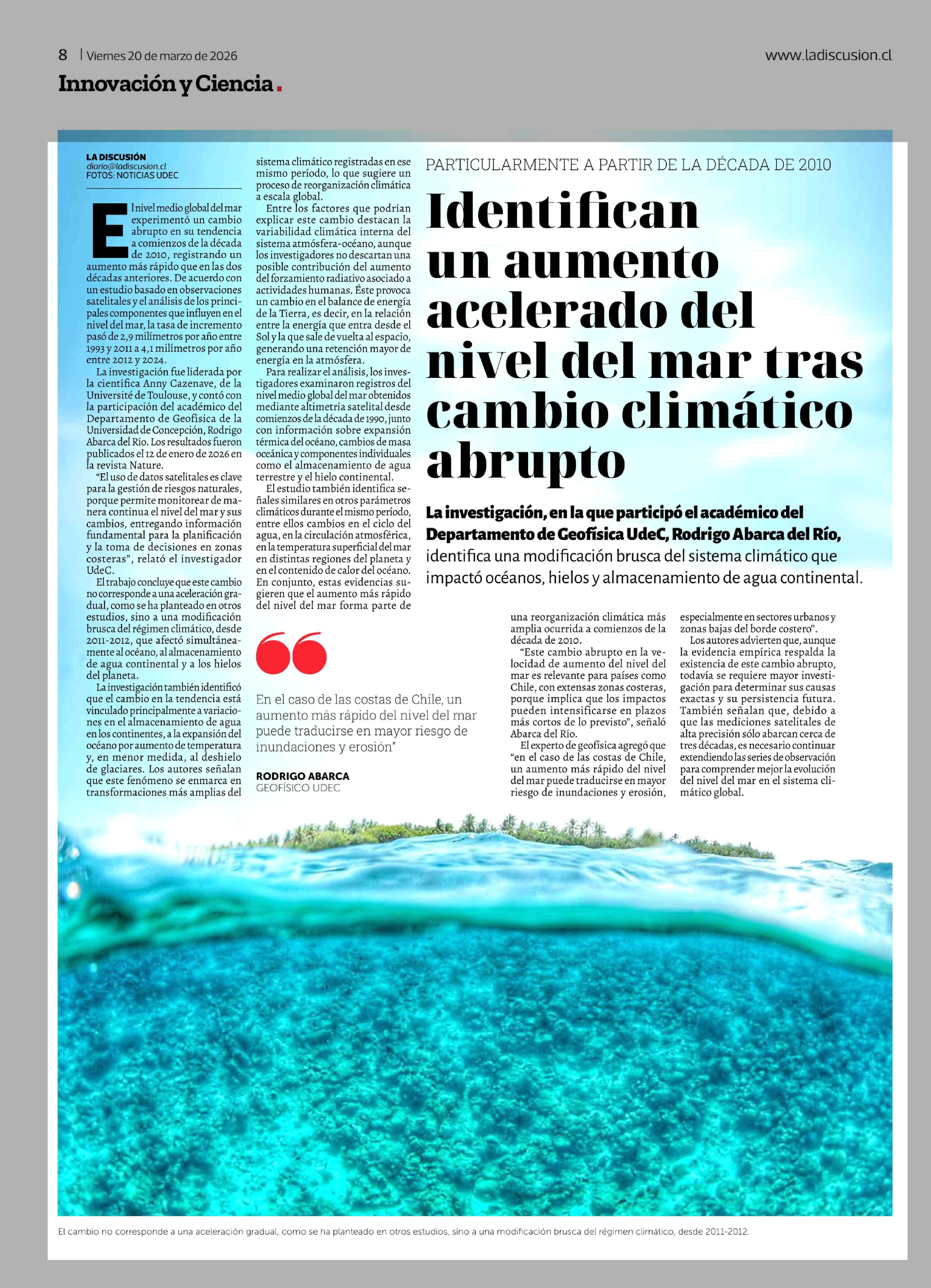 Título: Identifican un aumento acelerado del nivel del mar tras cambio climático abrupto